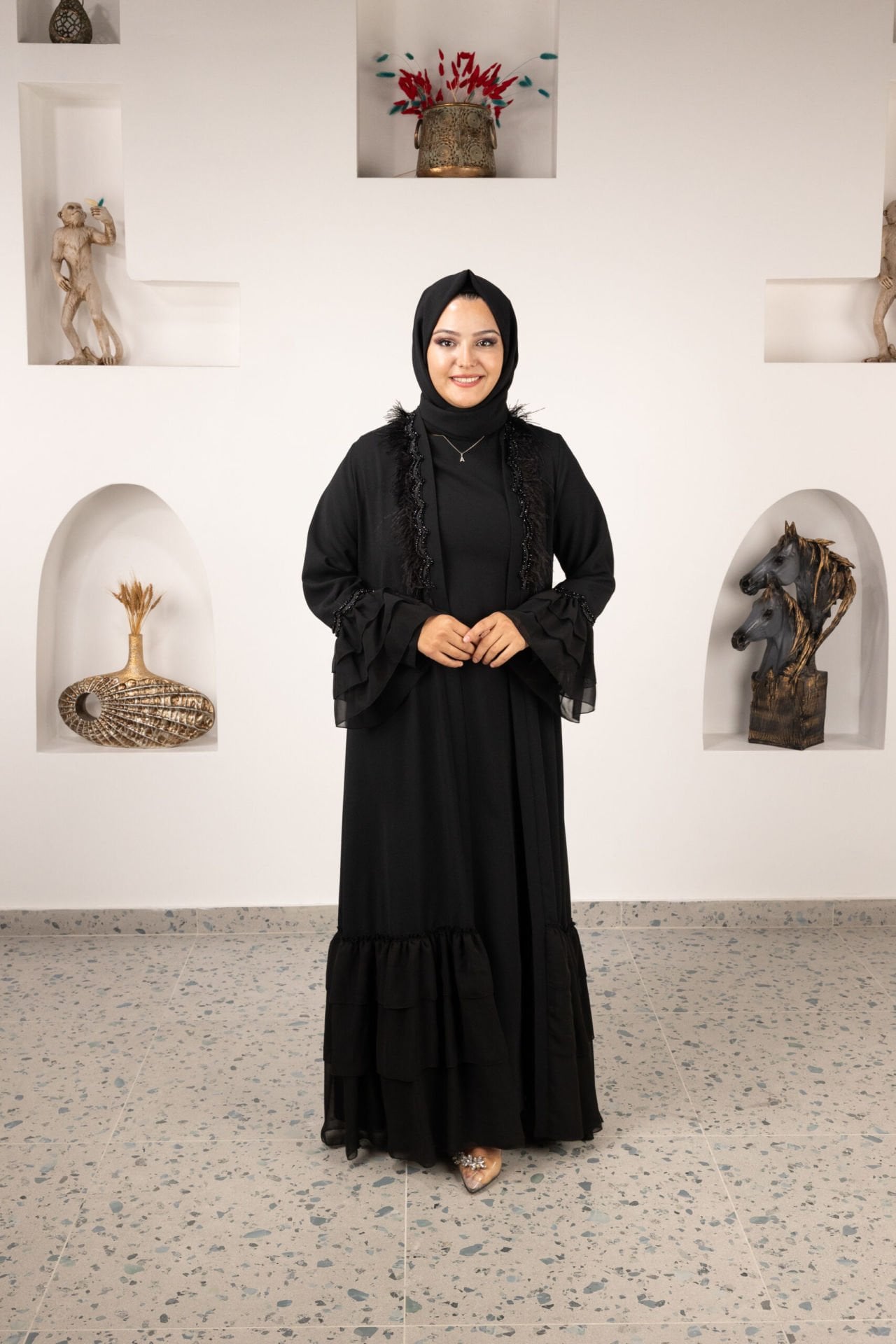 Şifon abiyeler zarif ve şık bir görünüm sağlar. Bu ikili takım ise özel günlerde ya da davetlerde mükemmel bir seçenektir. Kol ve etek detaylarındaki şifon dokusu, hafif ve zarif bir hava katarken, detaylı tasarımıyla göz alıcı bir görünüm sunar. Bu takım, her tarza ve vücut tipine uyum sağlayacak şekilde tasarlanmıştır. En özel anlarınızda size eşlik etmek için ideal bir tercihtir.