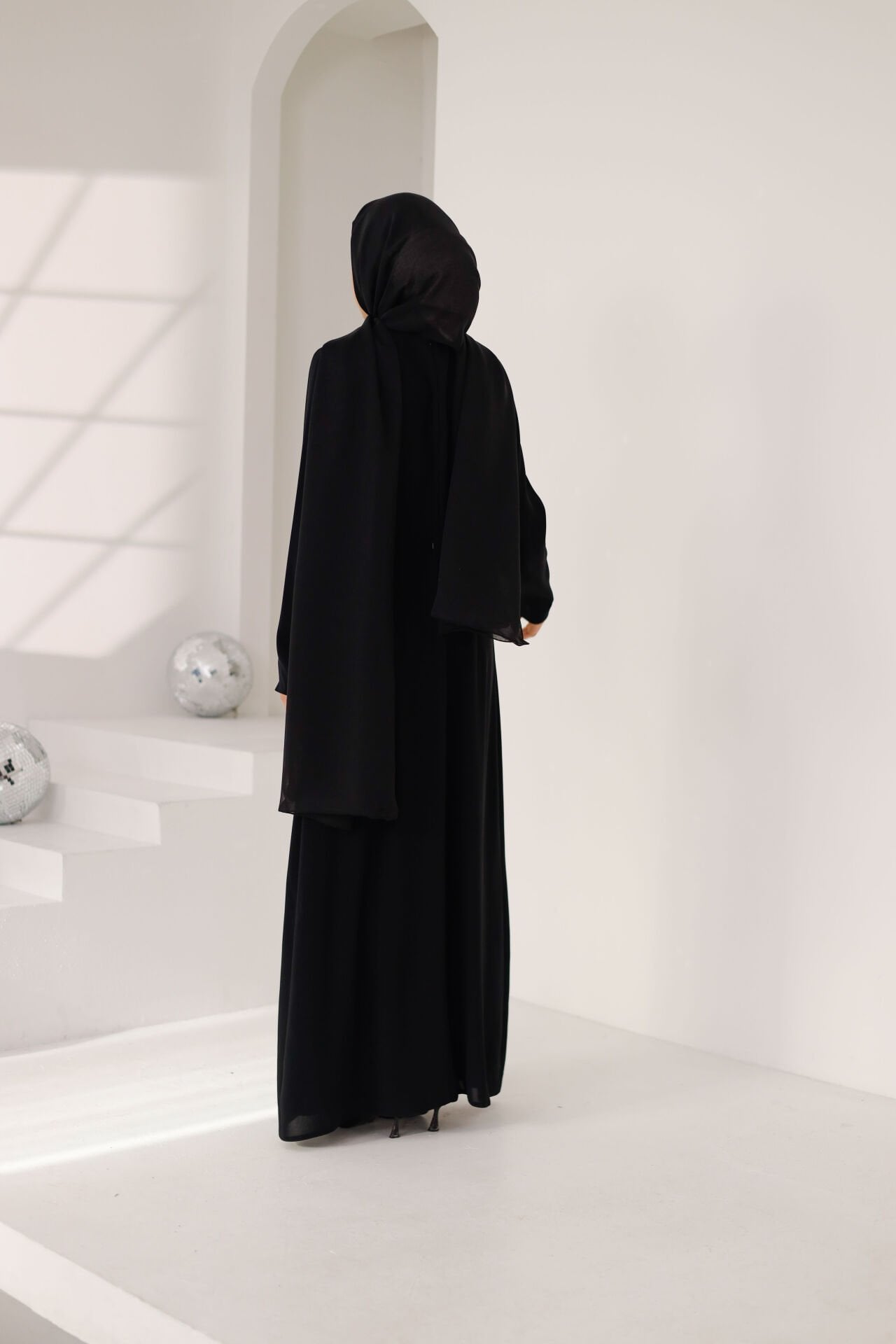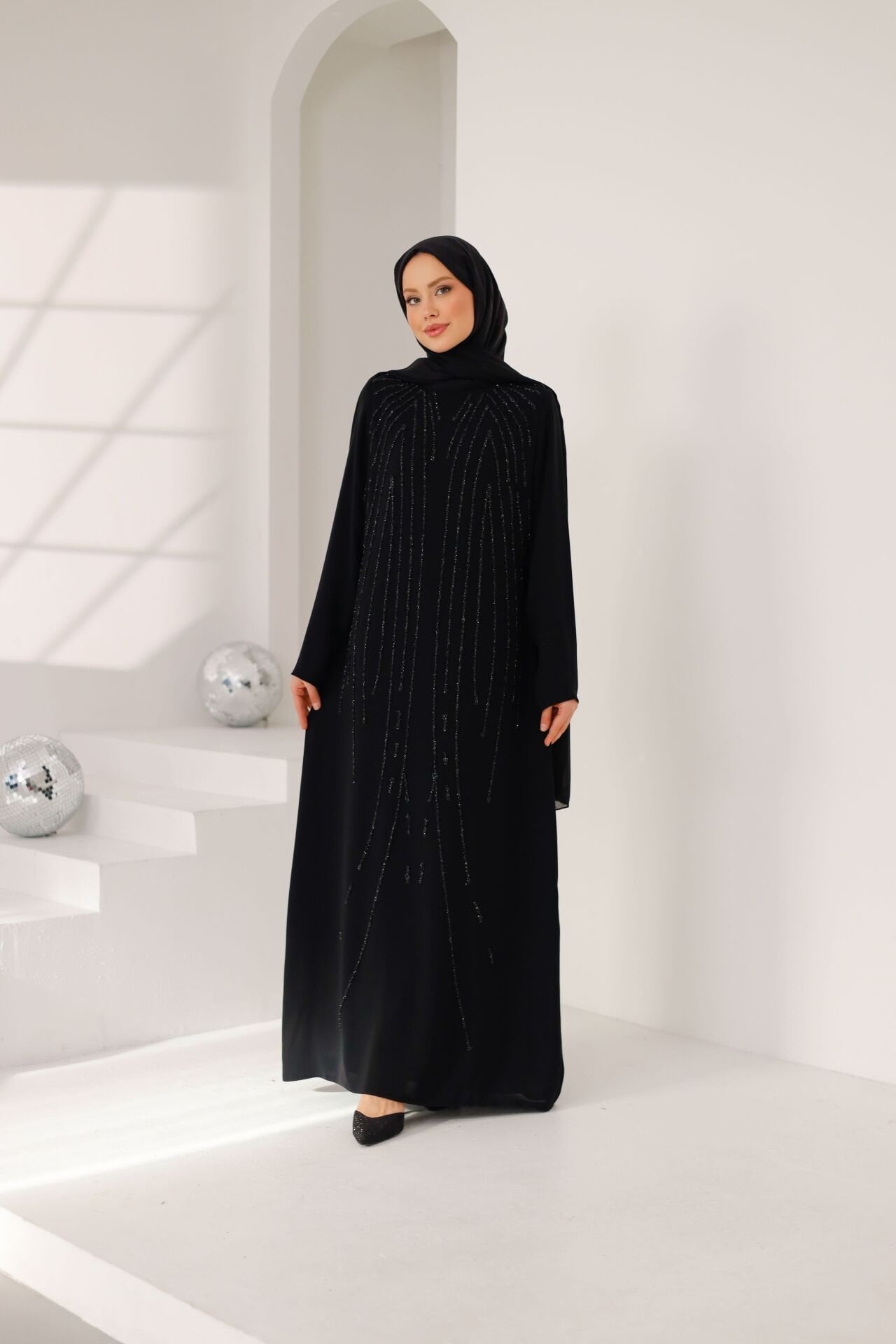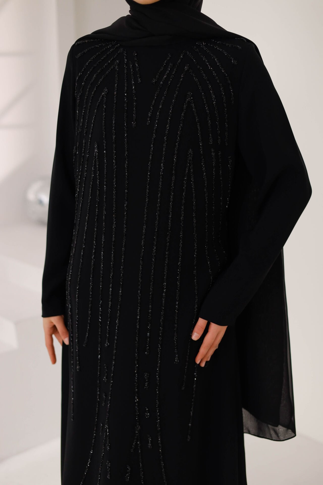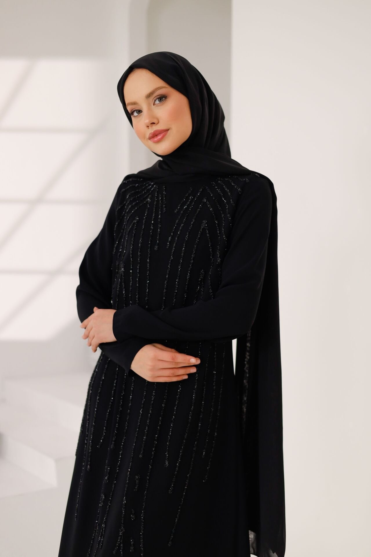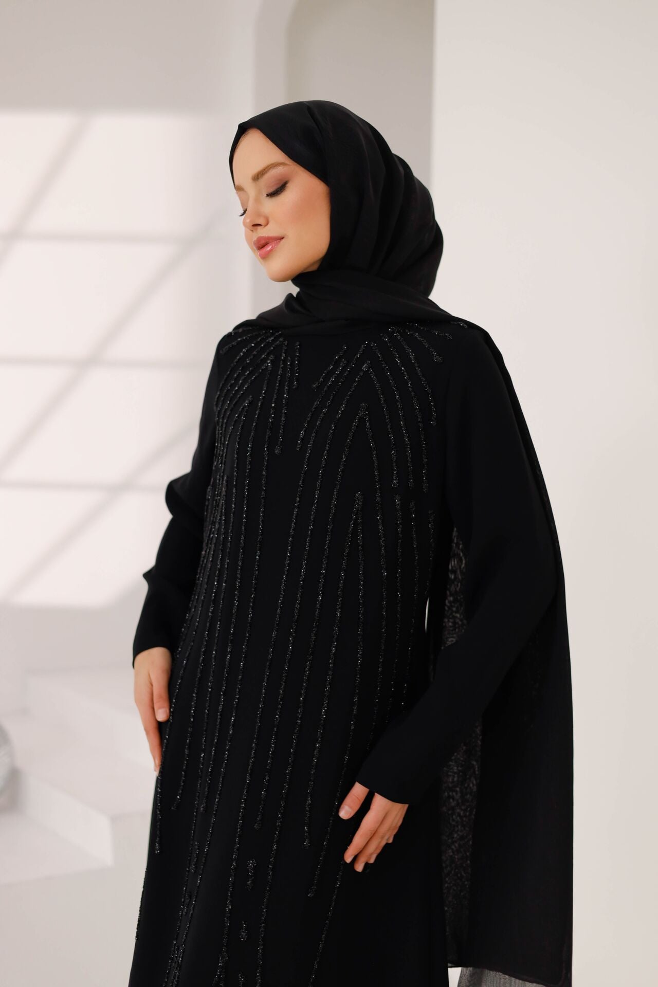 Zarif ışıltısı ve akıcı siluetiyle öne çıkan Açelya Abiye Elbise, özel günlerde şıklığı ve asaleti bir arada sunan modern bir tesettür abiye tasarımıdır. Krep kumaşın dökümlü yapısı, ince taş detaylarıyla birleşerek feminen ve sofistike bir görünüm oluşturur.