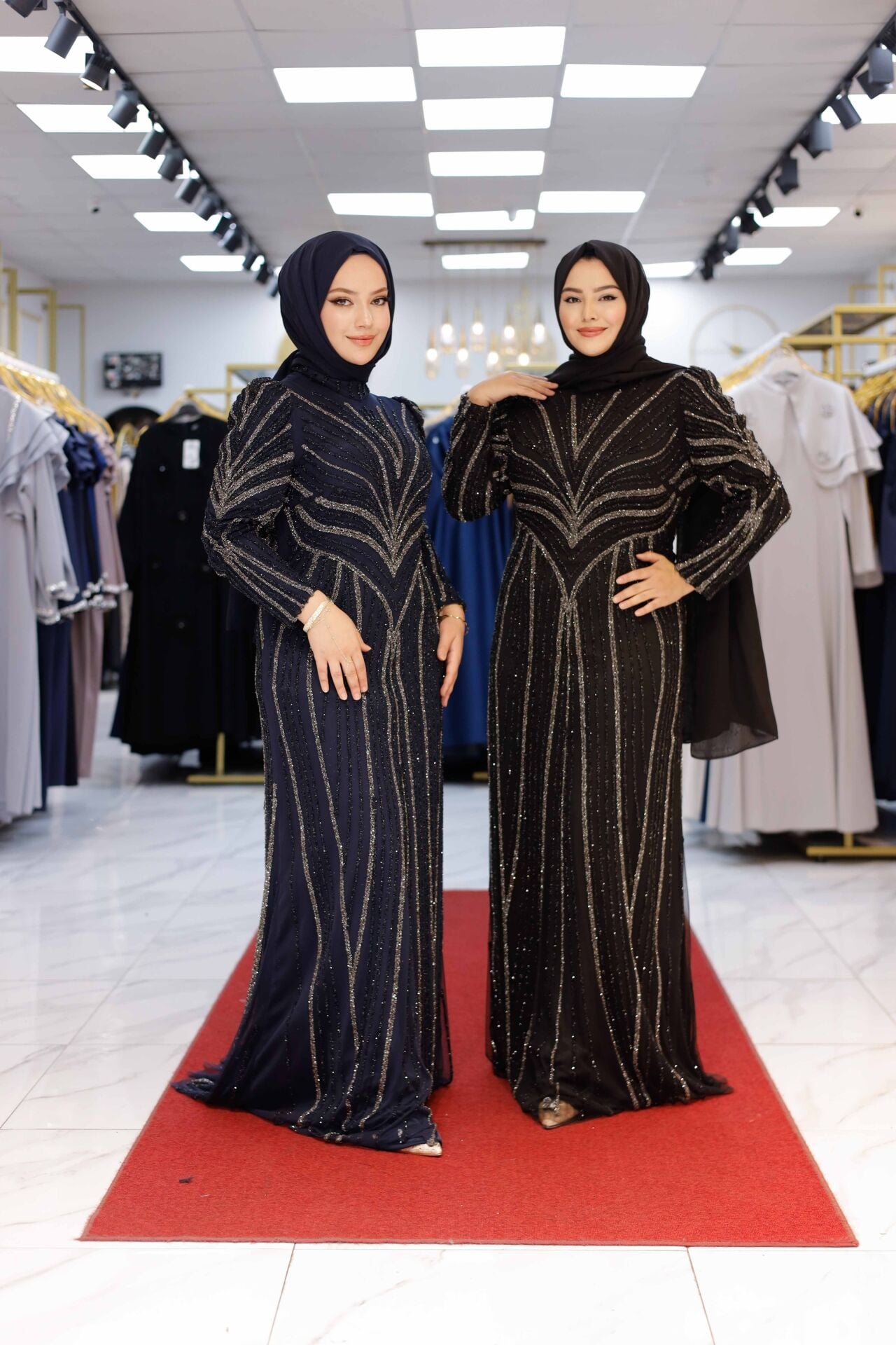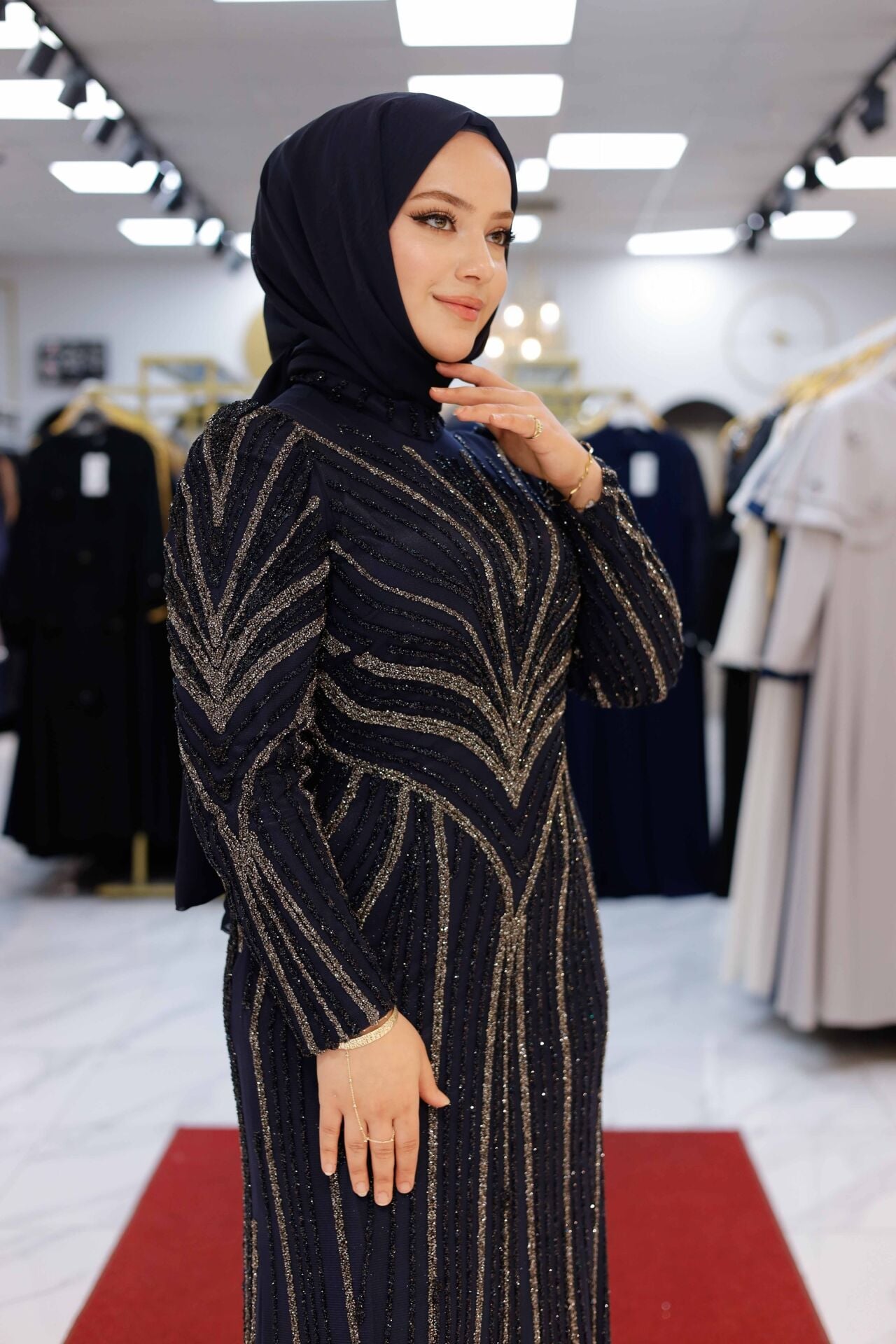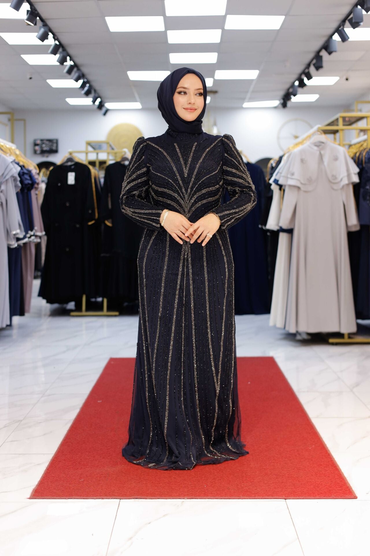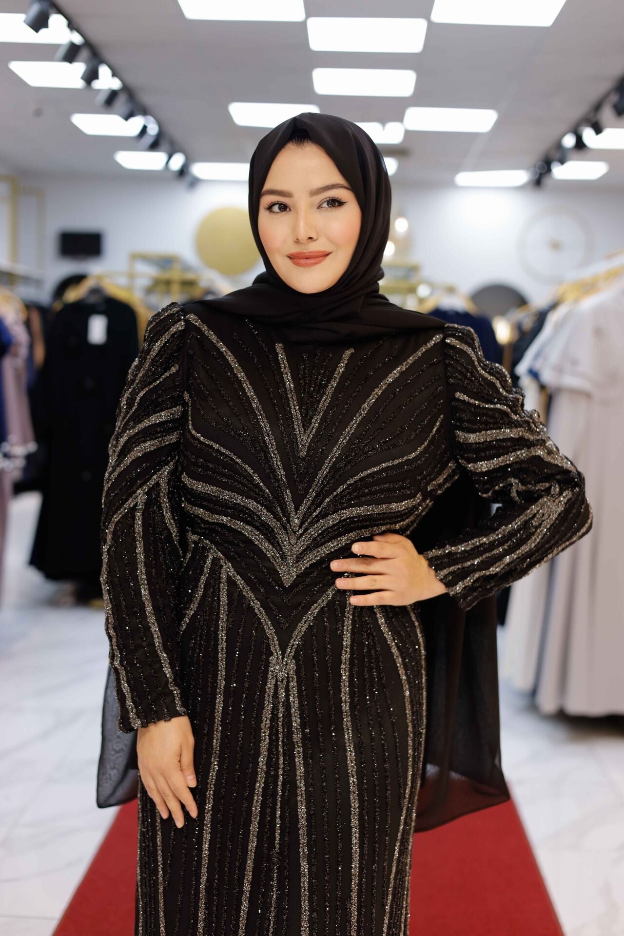 Özel davetlerin, düğünlerin ve nişan törenlerinin vazgeçilmezi olacak Afife Abiye Elbise, zarafeti ve konforu bir arada sunuyor. V formunda aşağı doğru süzülen simli işlemeleriyle boyunuzu daha uzun, silüetinizi daha ince gösteren bu model, klasik abiye elbise anlayışına modern bir dokunuş katıyor.
