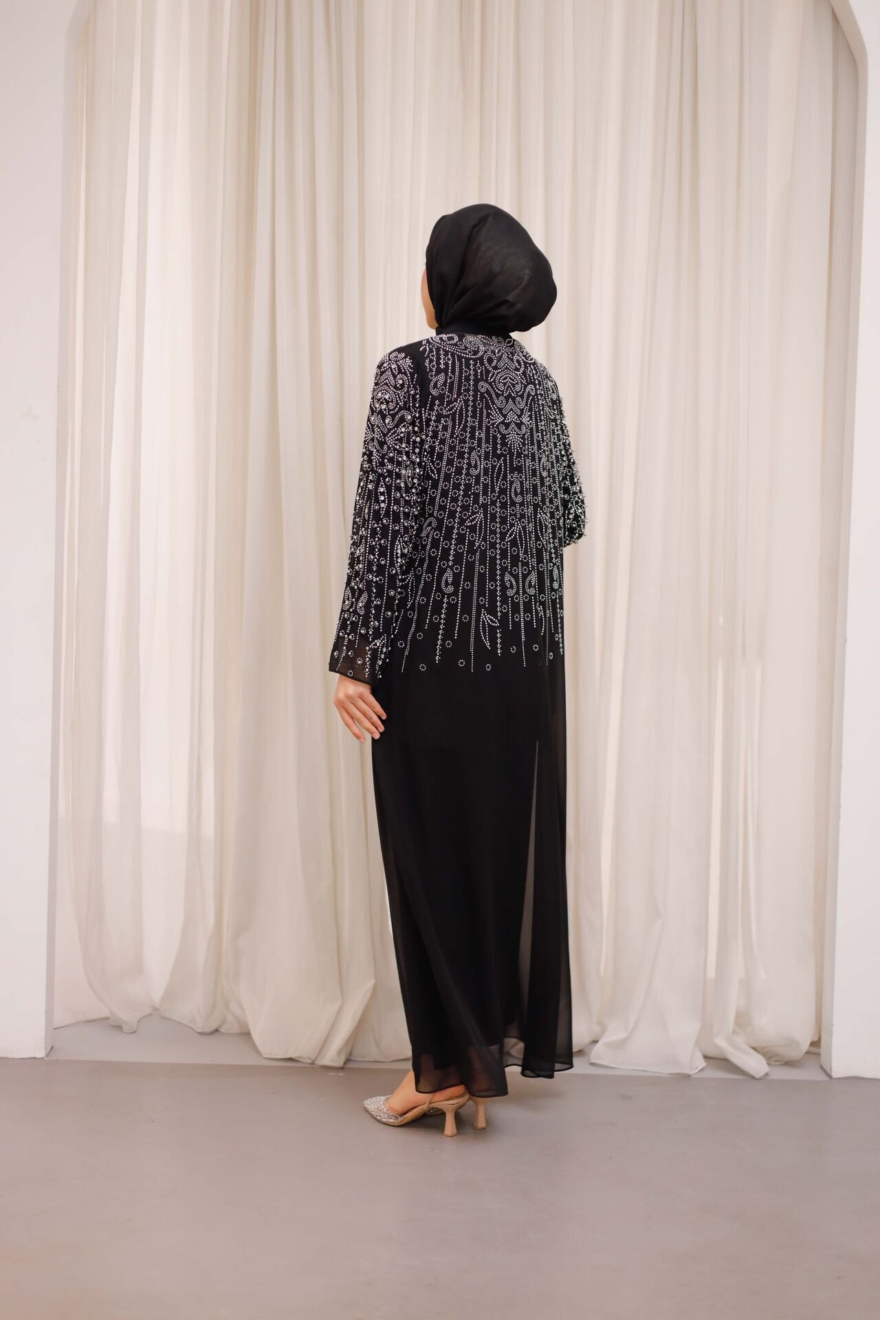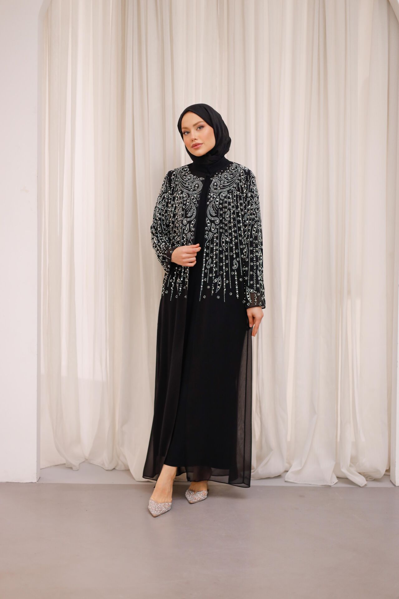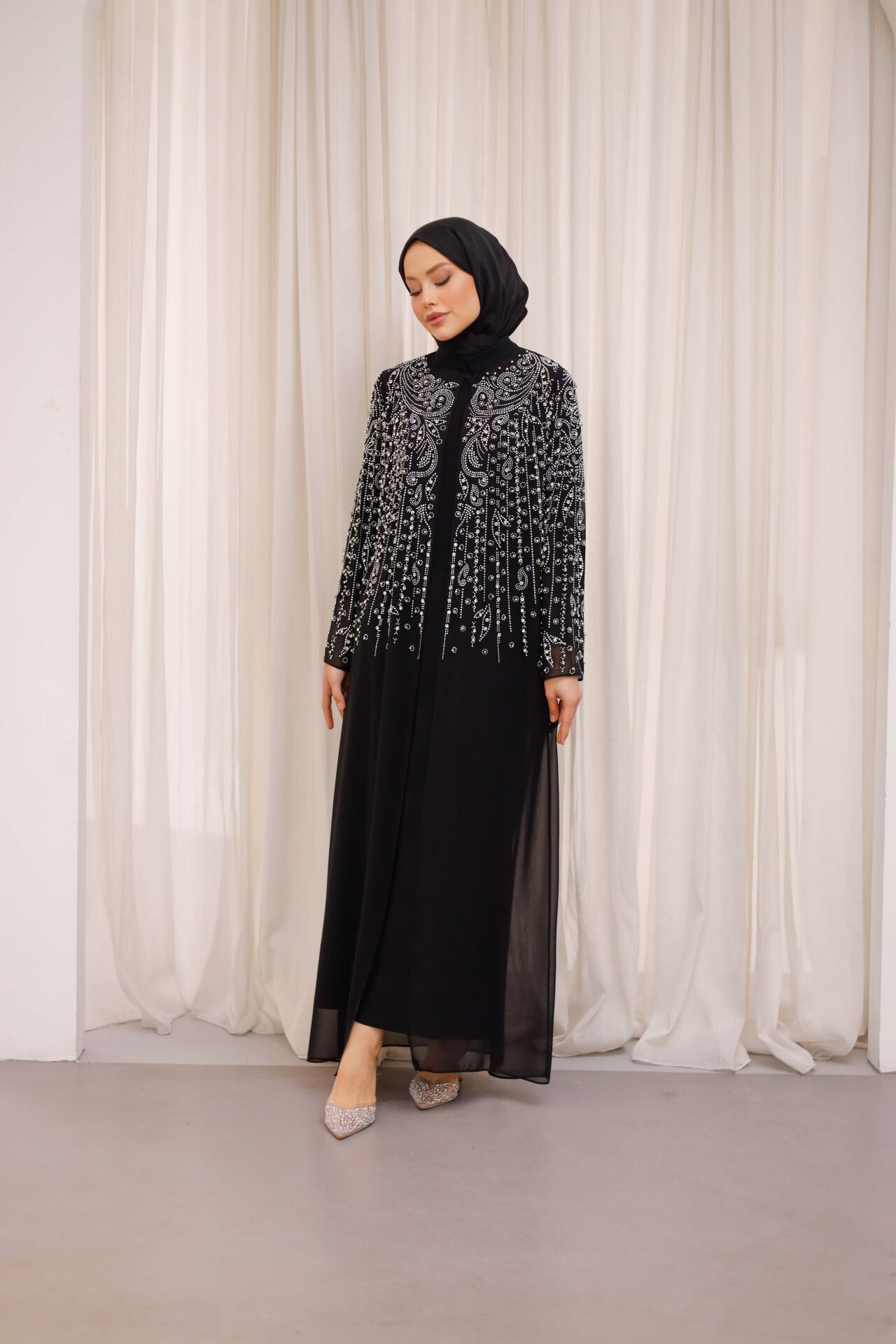 Alya Şifon Abaya – Taş İşlemeli Şifon Abaya Takımı (İçlik Dahil)