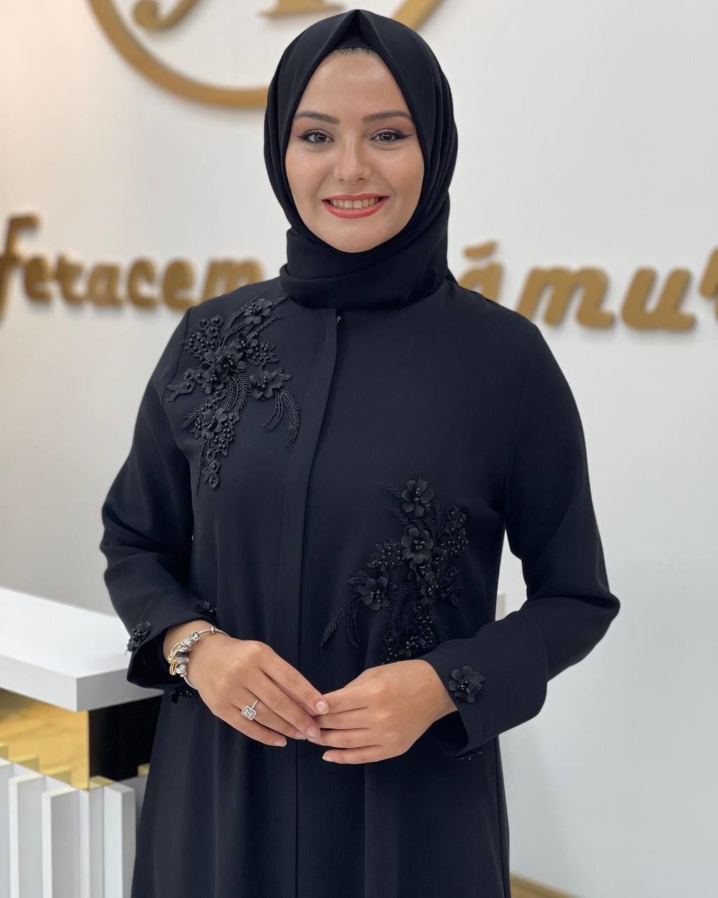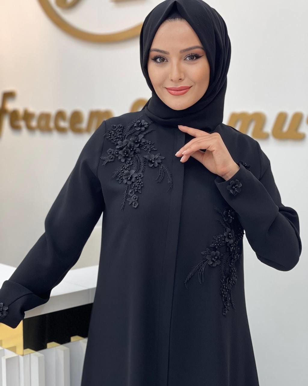 Minik detaylarla şık olmak mümkün!Aplik Ferace günlük hayatınıza ışıltı katarak zarif tasarımıyla dikkatleri üzerinize çekmeyi başarıyor. Krep kumaşa sahip bu ürün her mevsimde kullanım kolaylığı sağlıyor. Geniş beden aralığına sahip modelimiz tüm hanımefendilerin dolabında yer almayı bekliyor!