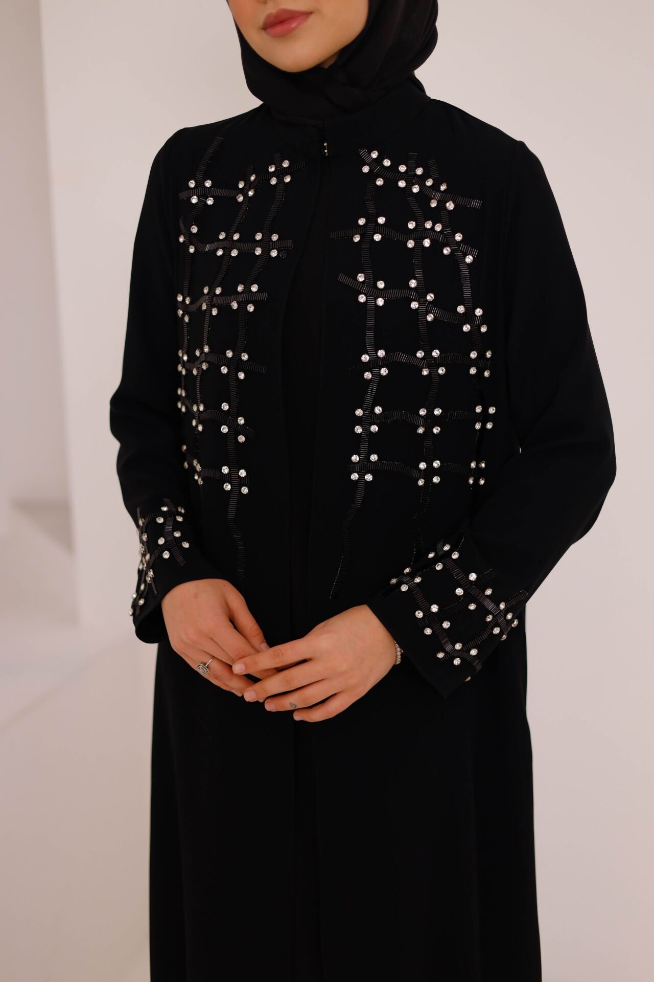 Özenle tasarlanan taş işlemeleri, abayanın ön ve kol bölümlerinde zarif bir ışıltı sunarken; sade kesimi sayesinde abartıdan uzak, sofistike bir görünüm elde edilir. Tek renk tasarımıyla zamansız bir şıklık sunan Asel Şifon Abaya, düğün, nişan, davet ve özel organizasyonlar için ideal bir tercihtir.