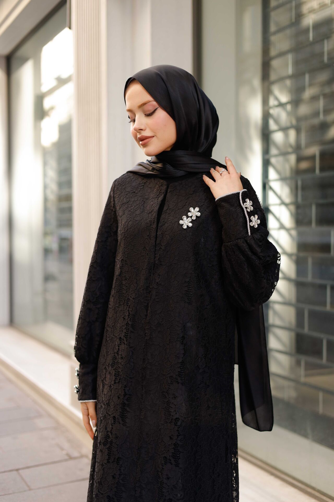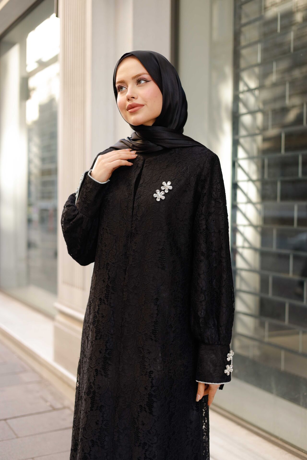• Takım İçeriği: Dantelli Abaya + Uzun Kollu İçlik