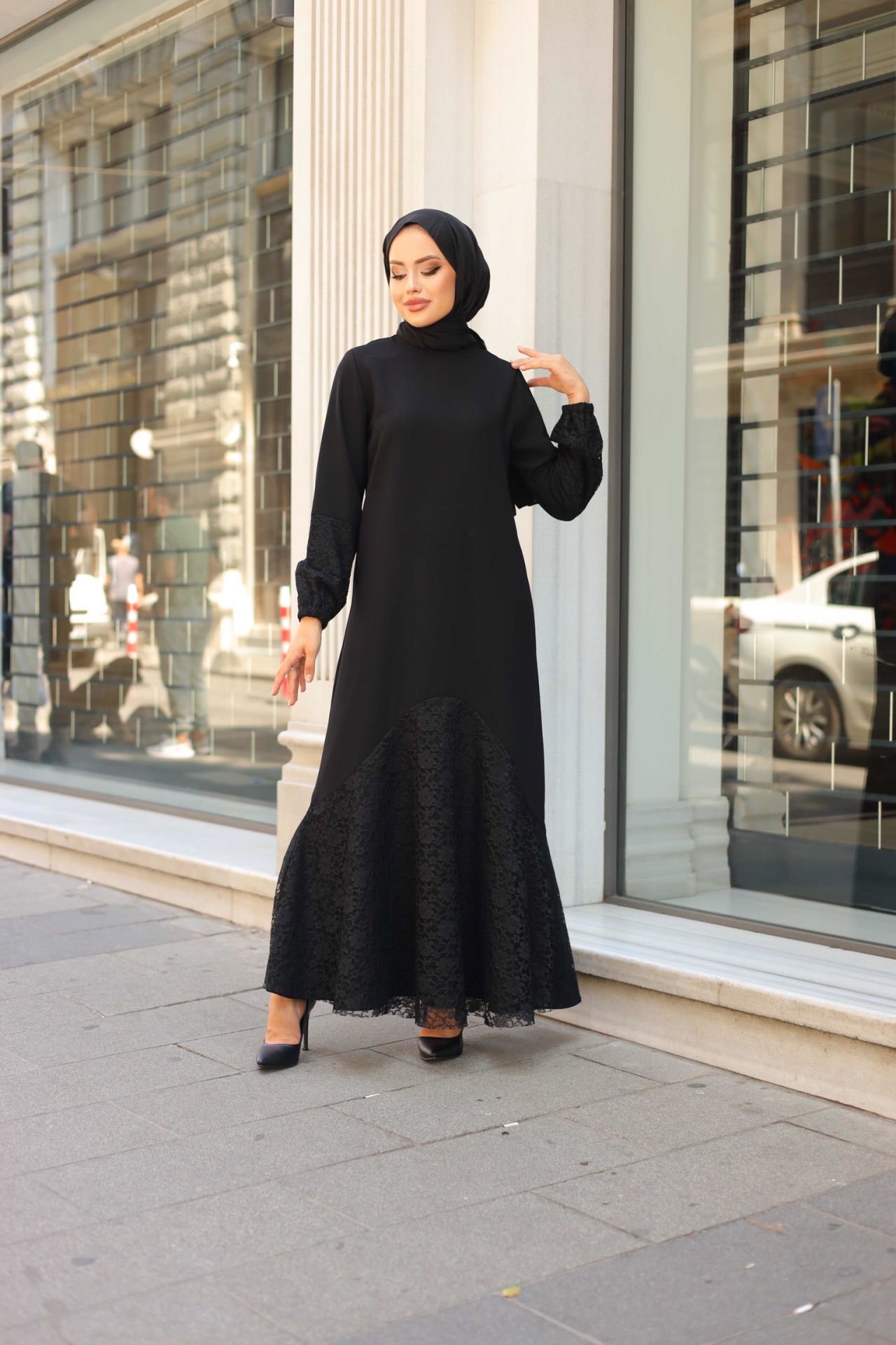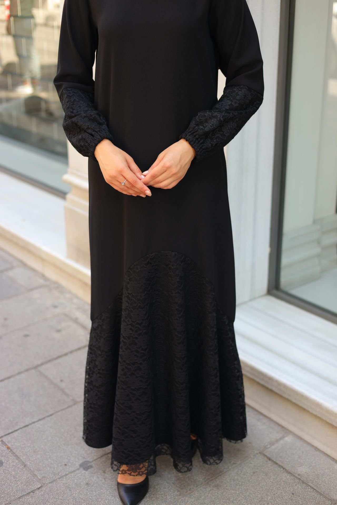 Zarif dantel detaylara sahip elbise modelimiz sizlere zarif ve şık bir görünüm sunar. Modern tasarımı ile dikkat çeken bu ürün hem özel günleriniz hem de kendinizi özel hissetmek istediğiniz her gün için gardrobunuzun vazgeçilmezi olacak.Ürün Özellikleri