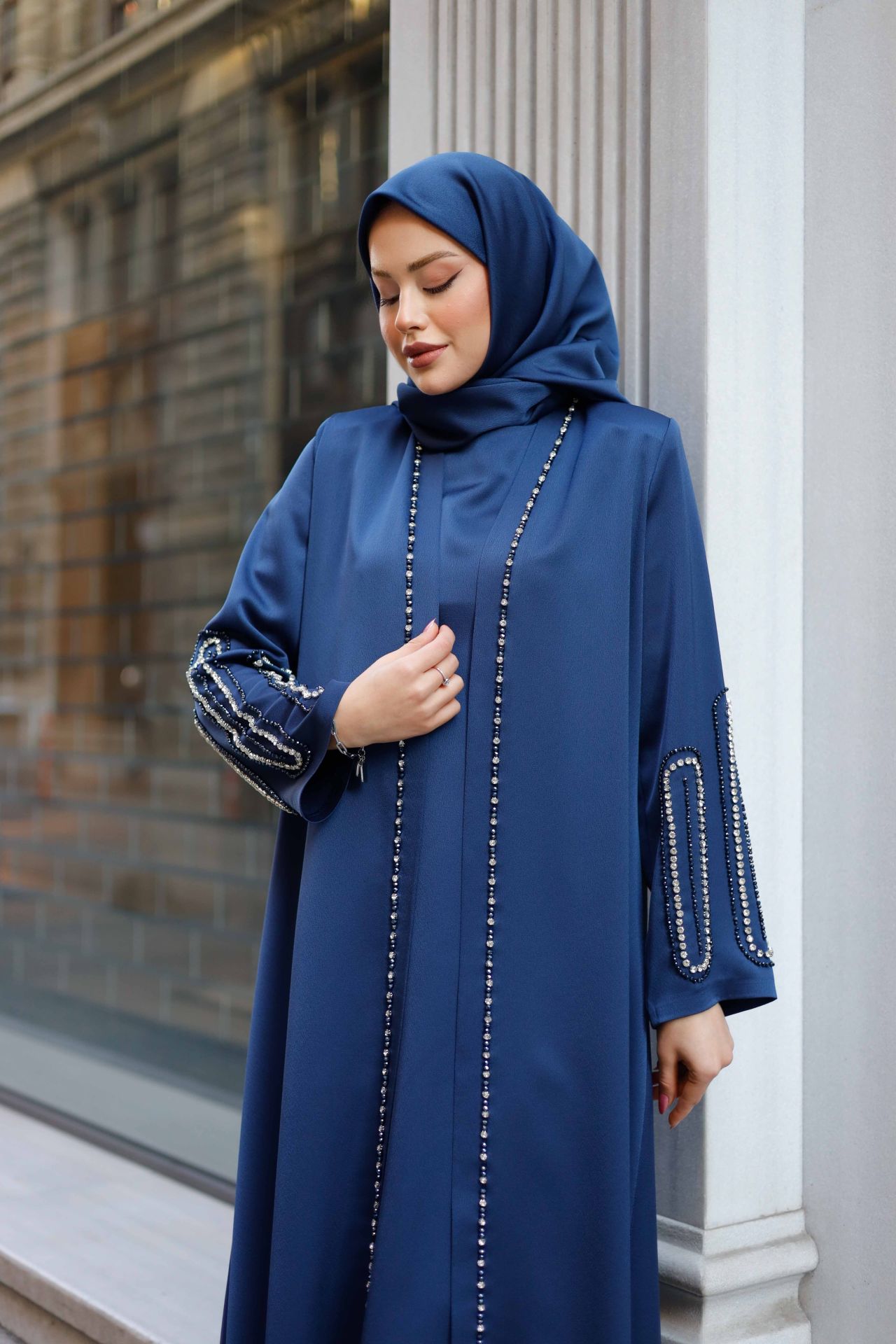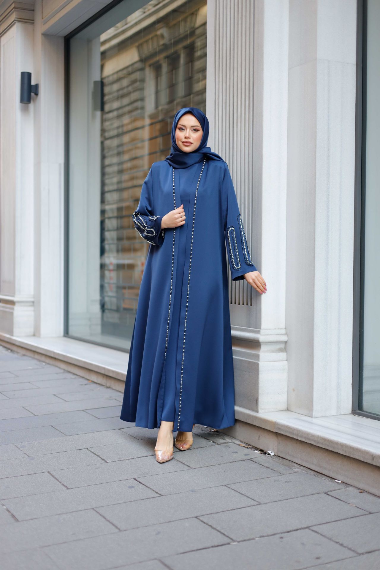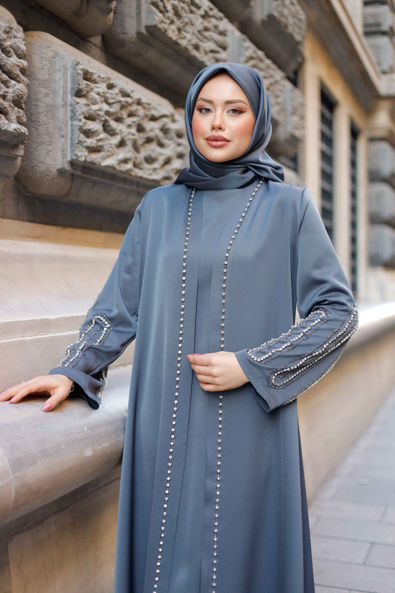 İnci Abaya - Abraham Kumaş (38-60 Beden) - Siyah, Gri, Mavi