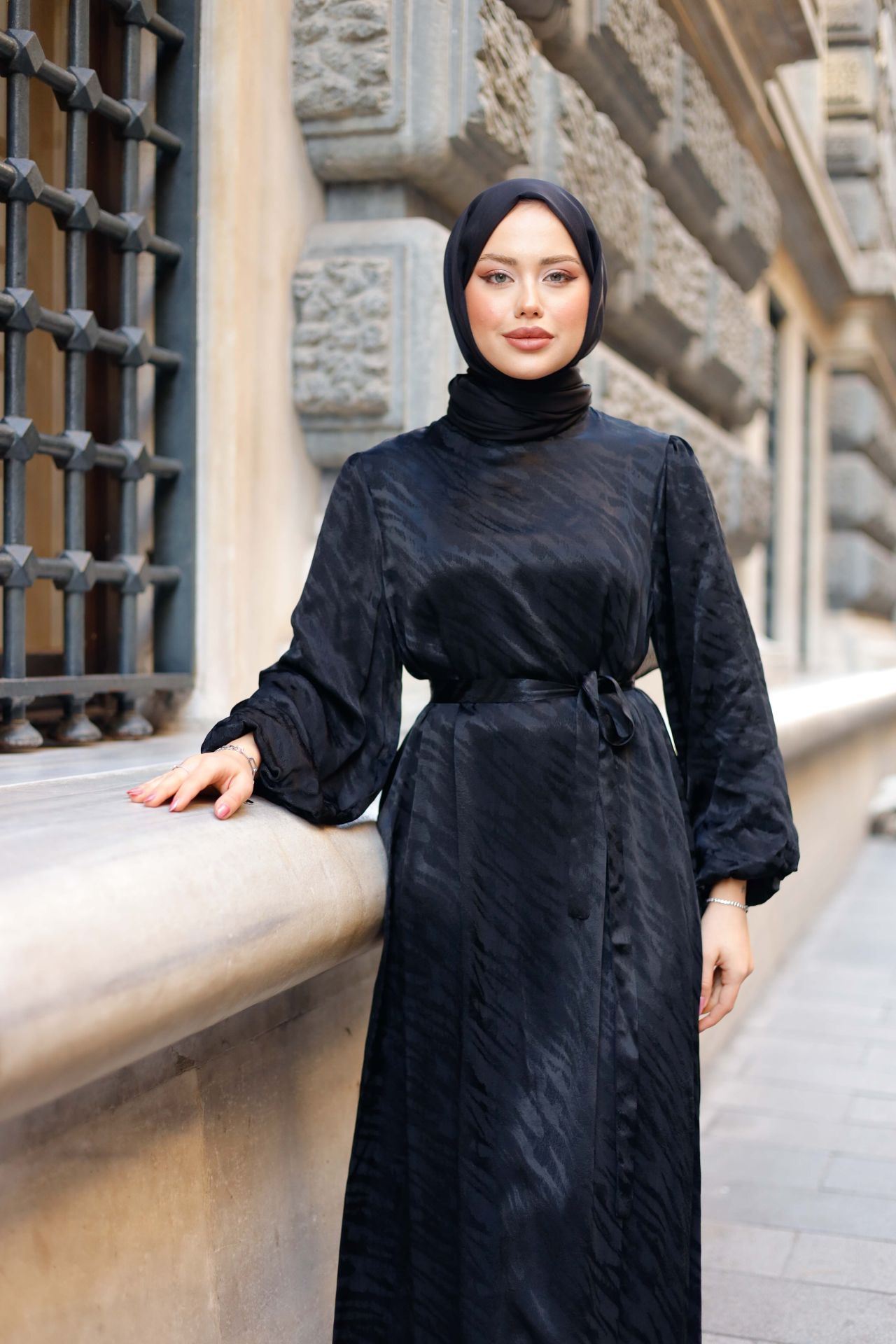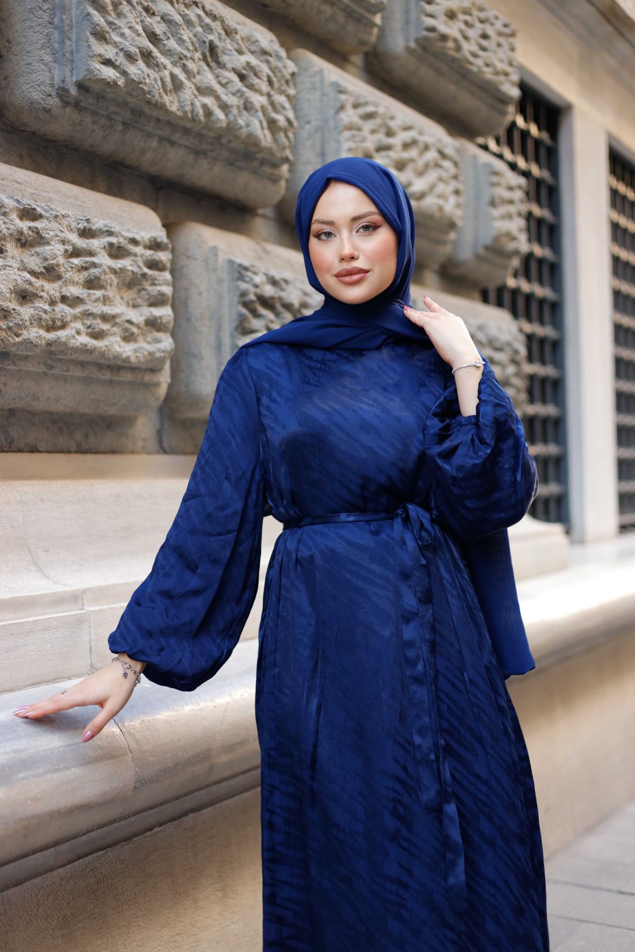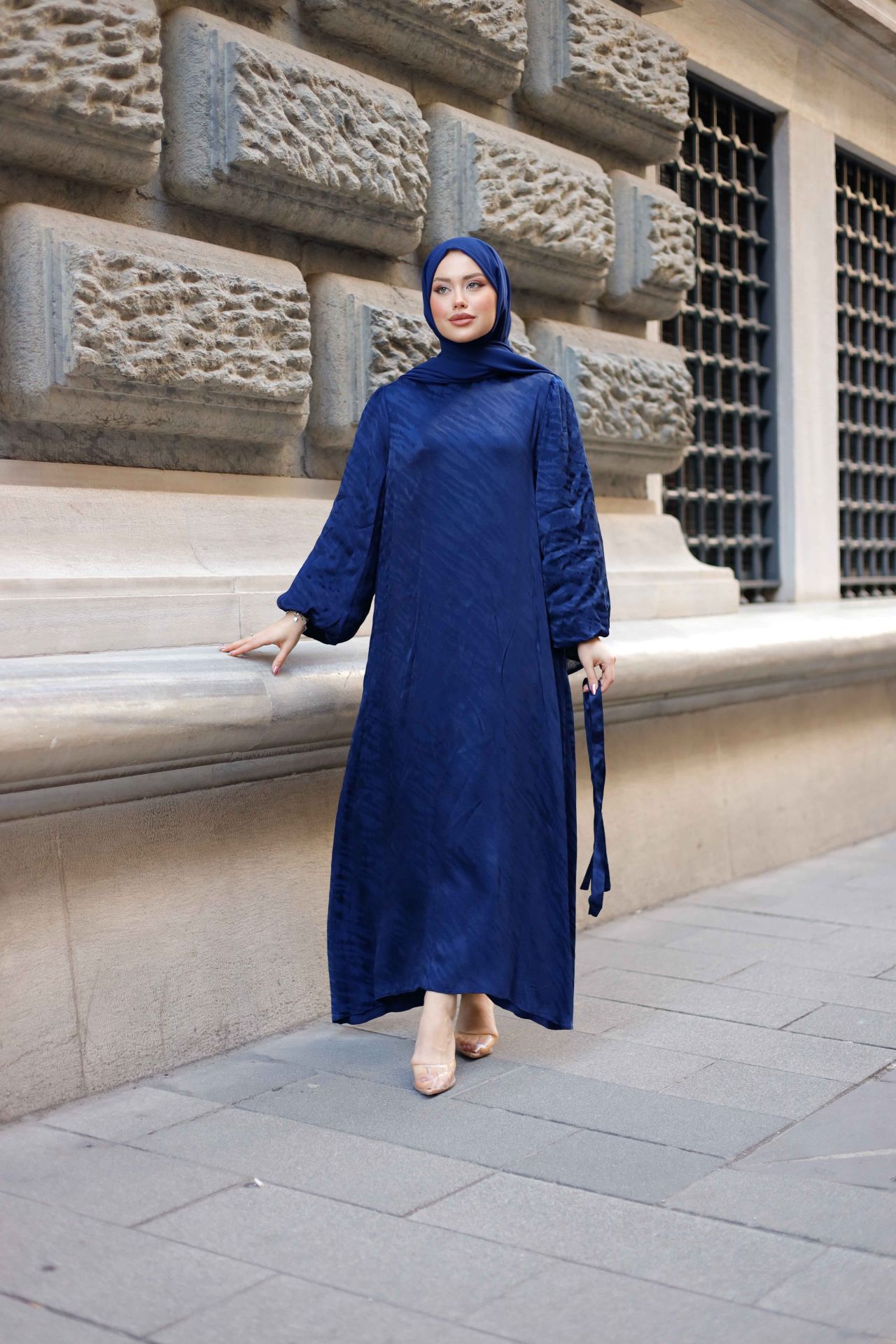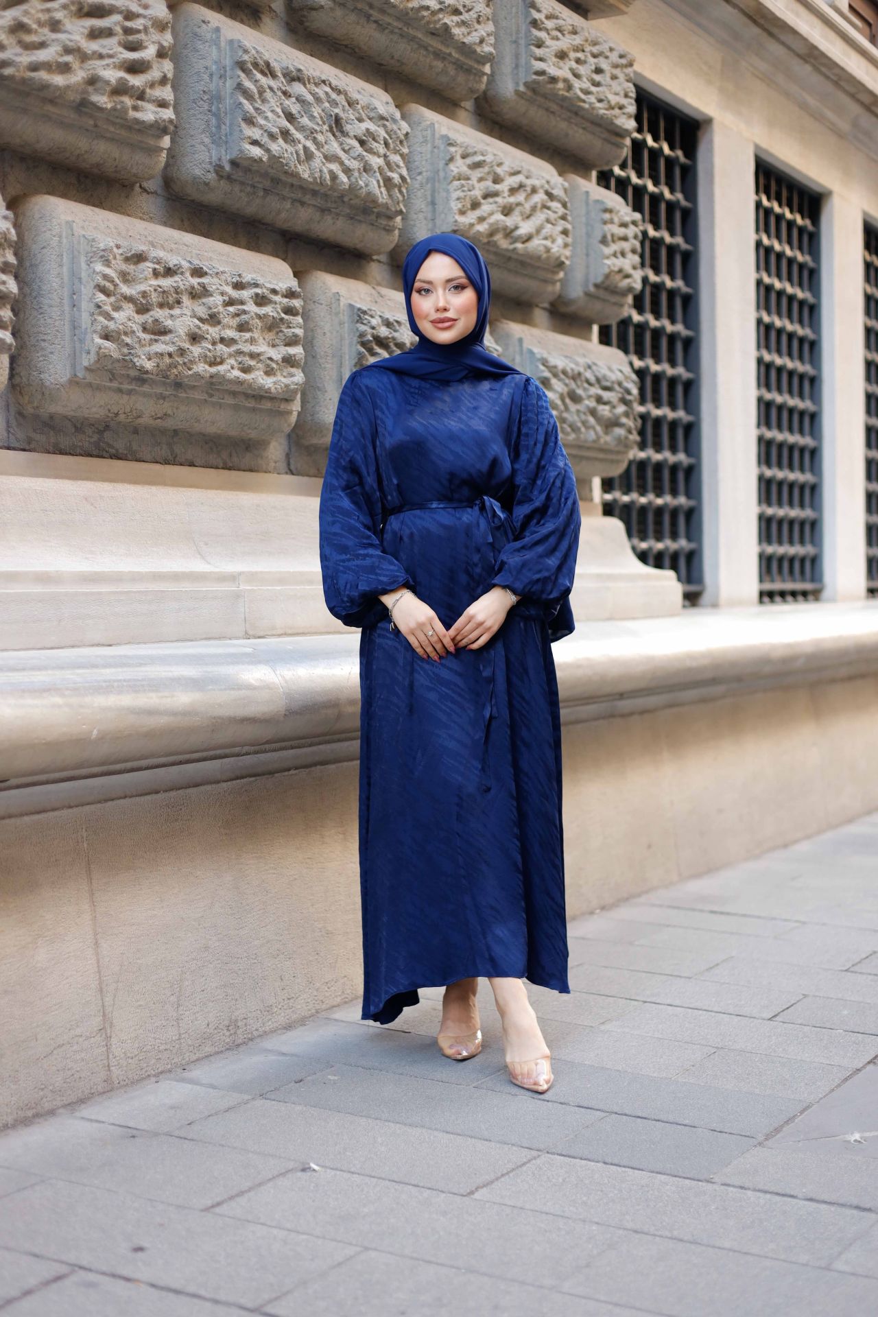 İpek Saten Salaş Elbise - 38-50 Beden - Siyah ve Lacivert