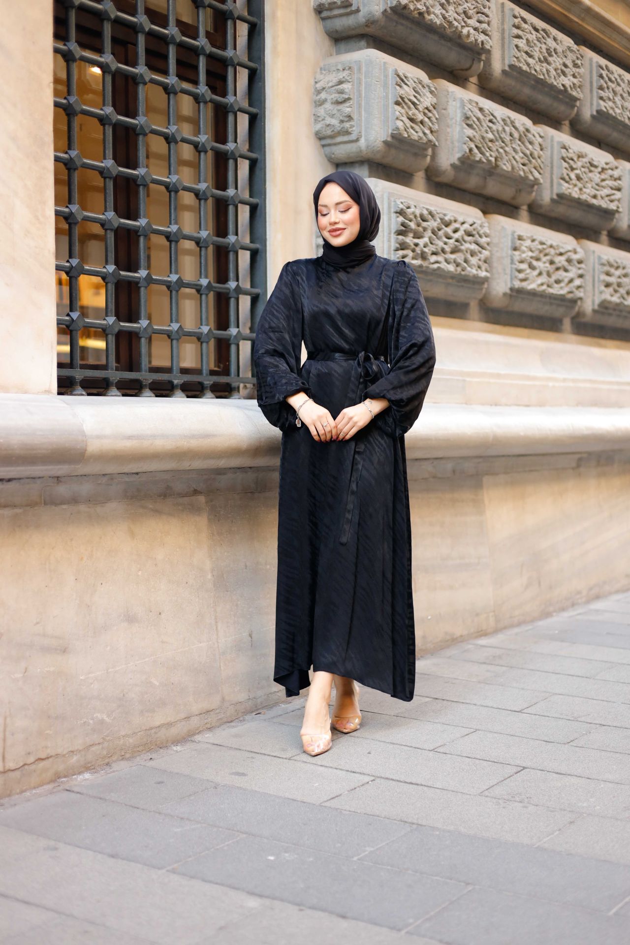 Kuşaklı ve kuşaksız kullanım alternatifi sunan bu elbise, stilinize göre farklı kombinasyonlar yaratmanıza imkan verir. Salaş kesimi, hareket özgürlüğü sağlar ve günlük şıklığınızı tamamlar. Hem özel davetlerde hem de günlük kullanımda rahatlıkla tercih edilebilecek bu model, ipek satenin kaliteli dokusuyla uzun süre kullanabileceğiniz şık bir parça olacak.