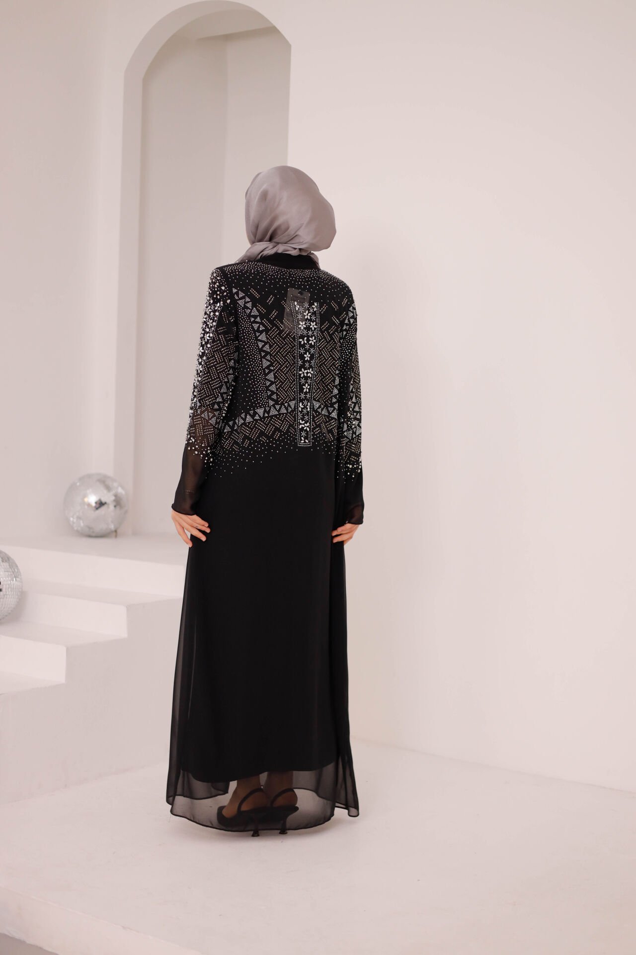 Zarif taş detayları ve akışkan şifon dokusuyla tasarlanan Liona Işıltılı Şifon Abaya, özel günler ve davetler için modern ve sofistike bir şıklık sunar. Üst bölümde yer alan ışıltılı işlemeler, abaya modeline güçlü ve zarif bir karakter kazandırır.