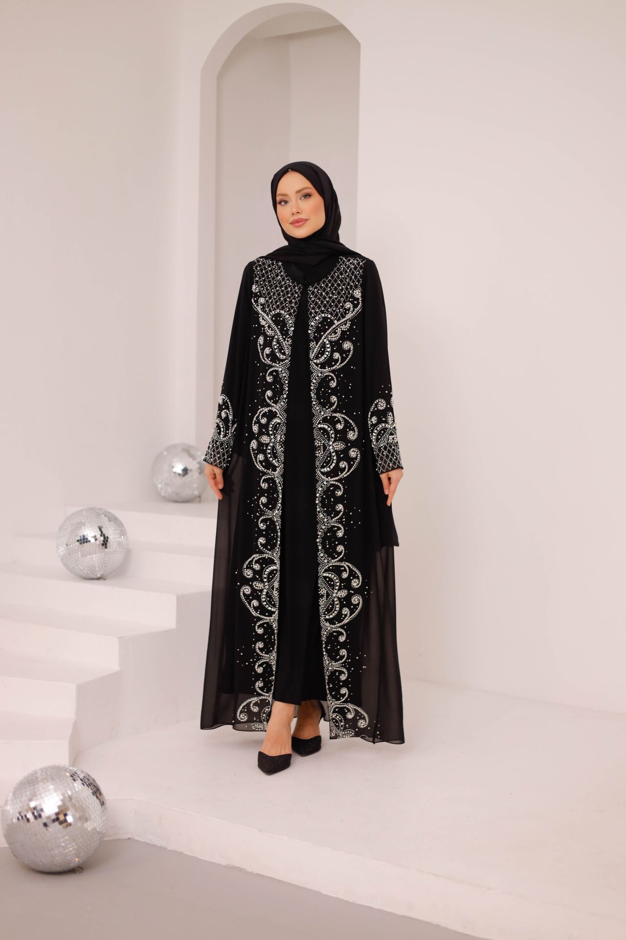 Selin Taş İşlemeli Şifon Abaya