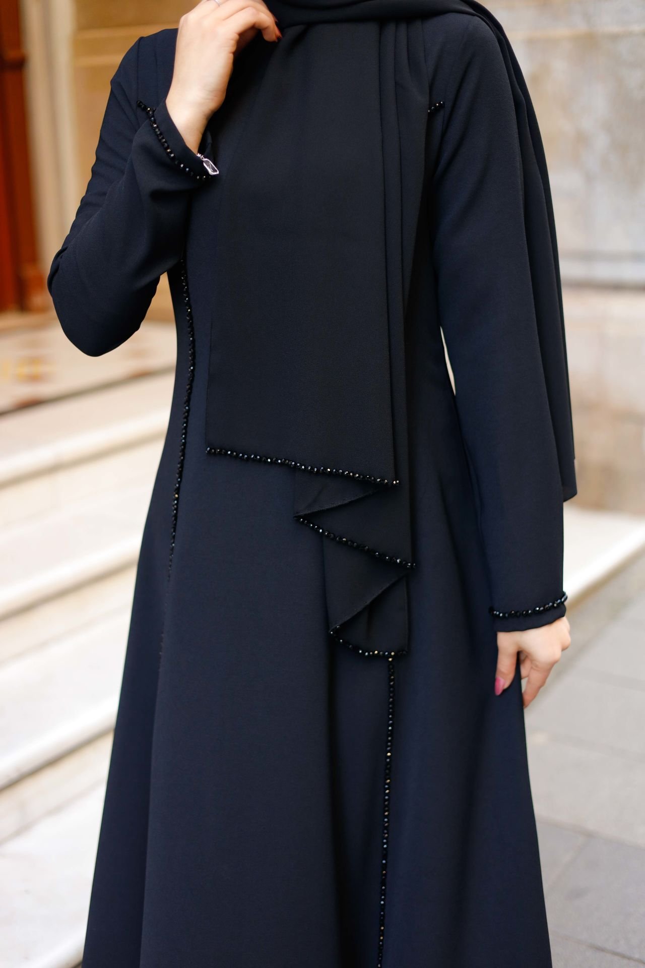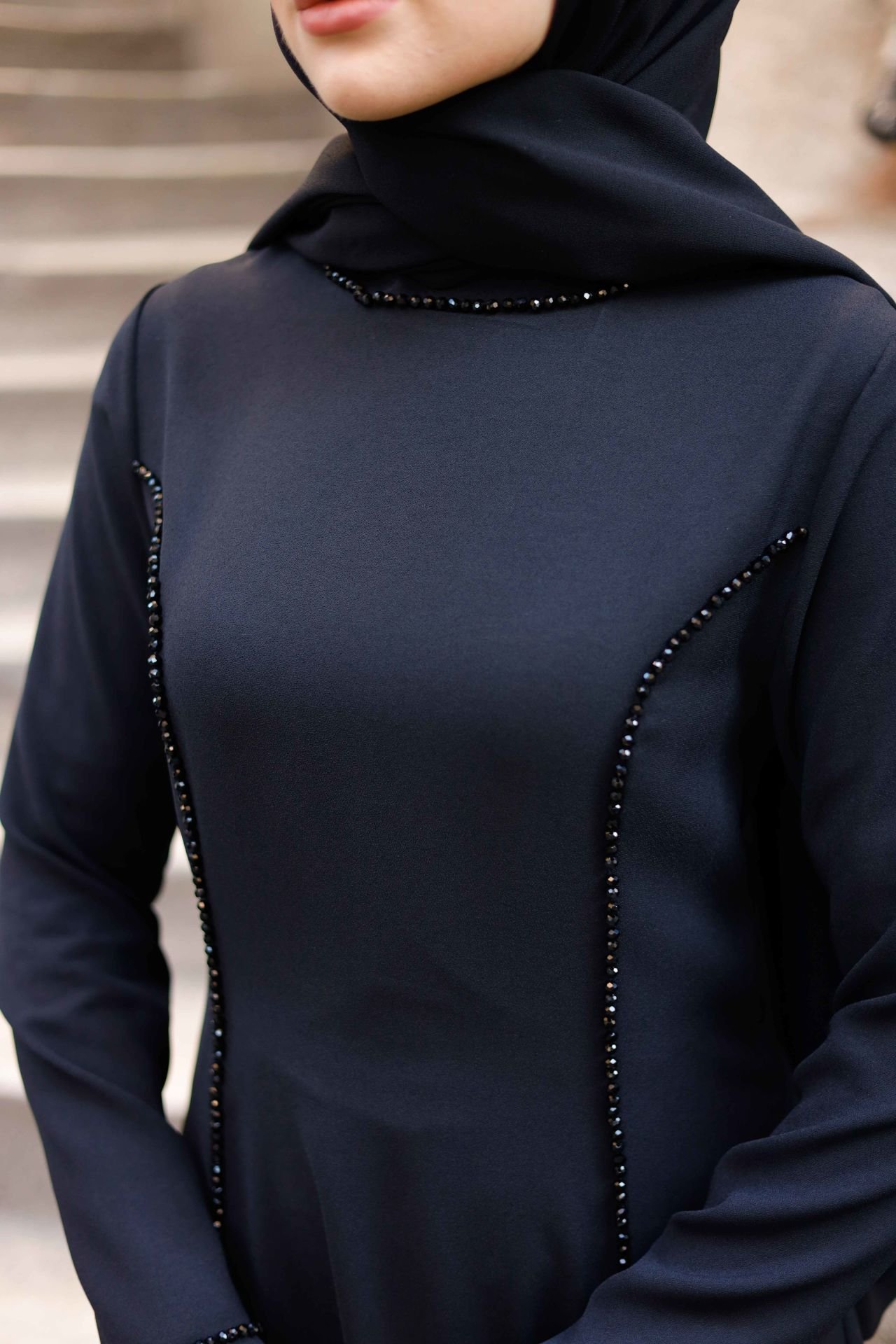 Zarif tasarımı ve modern şerit deseniyle öne çıkan bu elbise, krep kumaşın şıklığını ve rahatlığını bir arada sunuyor. 38 bedenden 60 bedene kadar mevcut olan bu elbise, geniş beden aralığıyla her vücut tipine uyum sağlar. Siyah rengiyle zarafetinizi ön plana çıkarırken, şerit deseni detayları elbiseye şık ve sofistike bir görünüm kazandırır.