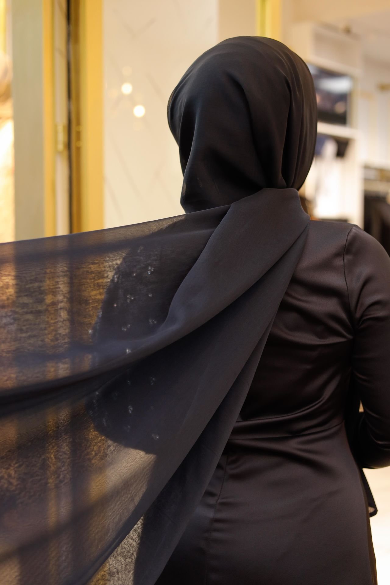 İncelik ve zarafetin buluştuğu nokta: Janjan Kumaş Şal. Siyah rengin zamansız şıklığını, janjan kumaşın ışıltılı dokusuyla birleştiren bu şal, her anınıza sofistike bir dokunuş katacak. 73 cm genişliğinde ve 2 metre uzunluğunda, özgürce sarılabileceğiniz bu şal, vücudunuza tam oturacak şekilde tasarlandı.