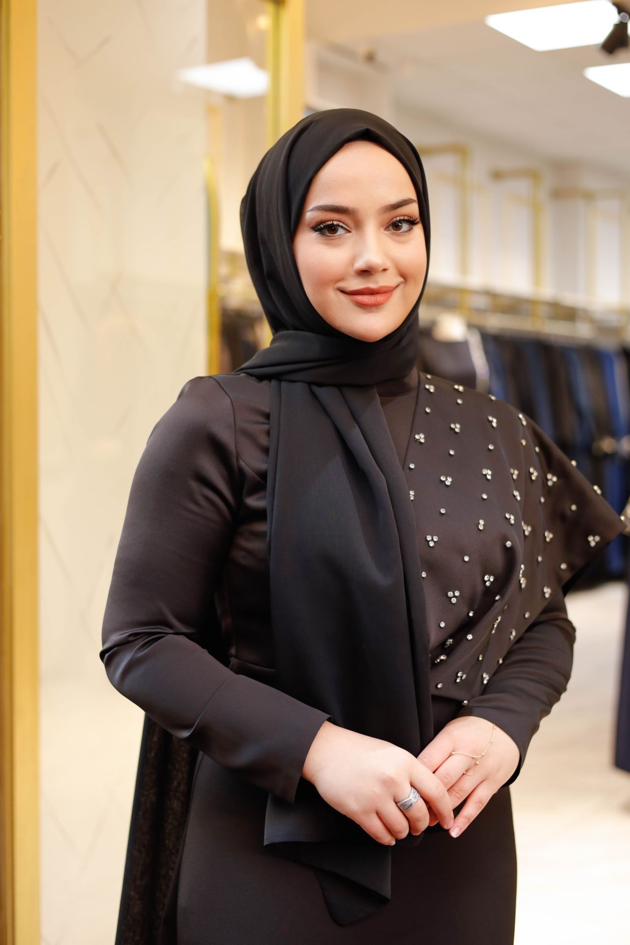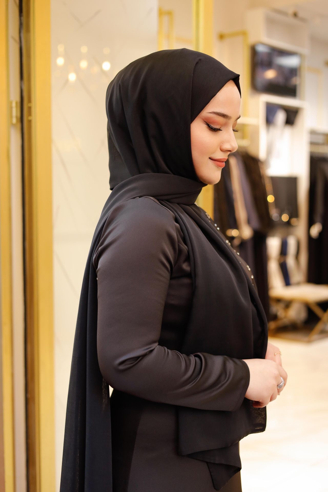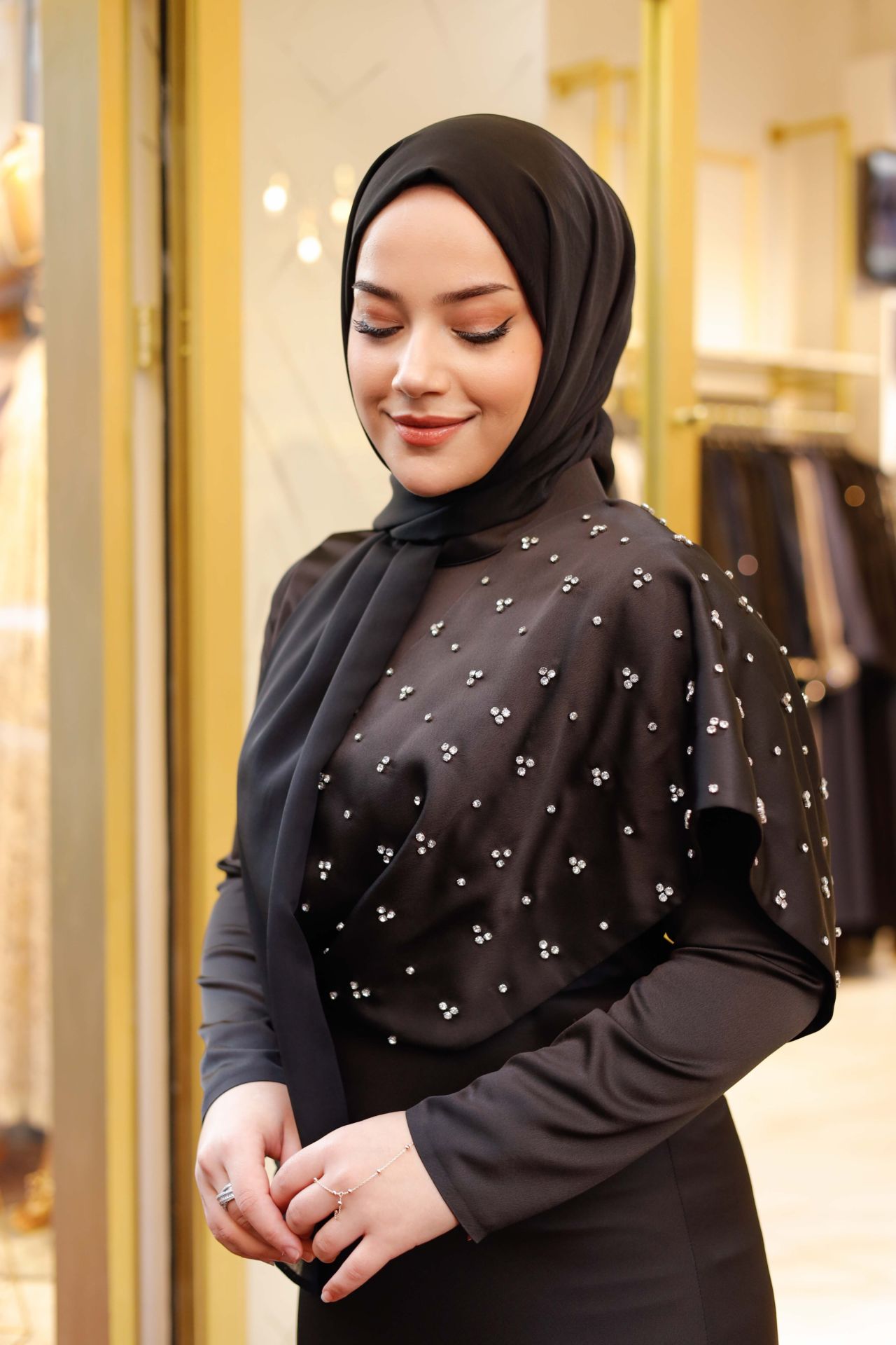 Her bir detayıyla zarafeti vurgulayan janjan kumaş, dokusundaki ışıltılarla adeta bir mücevher gibi parlıyor. Siyahın derinliğiyle birleşen bu şal, hem günlük kullanımda hem de özel davetlerde stilinizi tamamlamak için mükemmel bir seçenek. Üzerinizdeki her hareketle ışıldayan bu şal, sizi her ortamda göz alıcı kılarken, sade bir şıklık sunar.