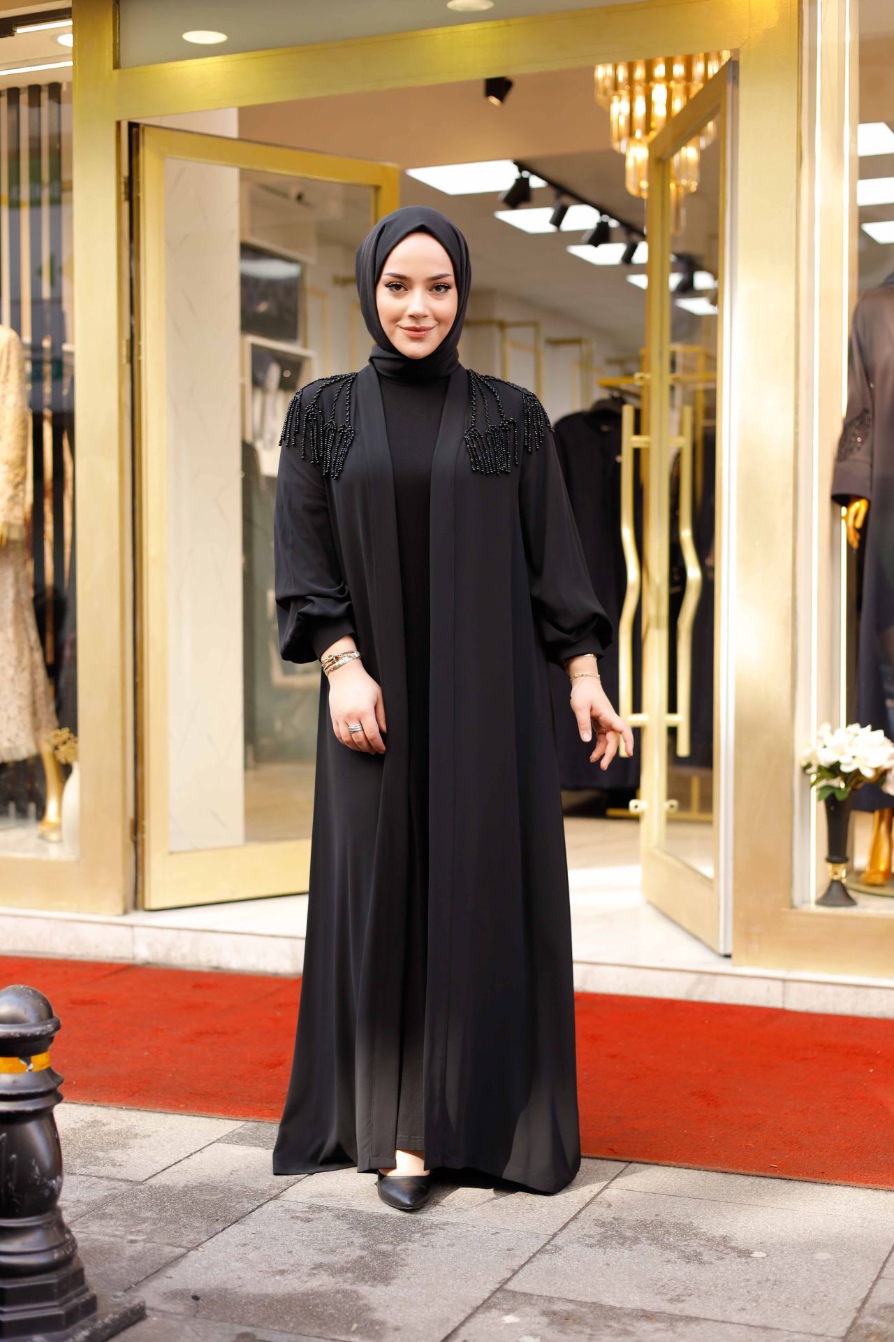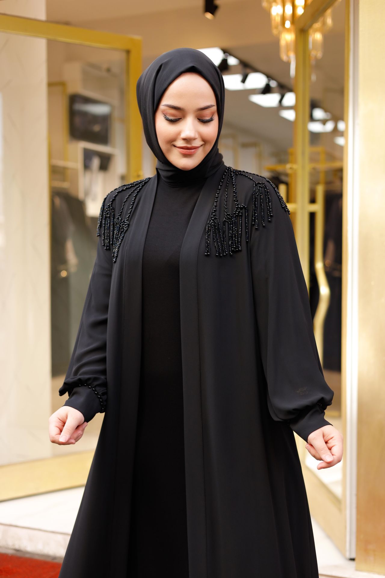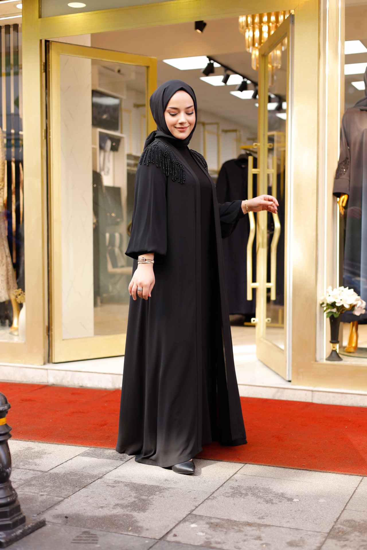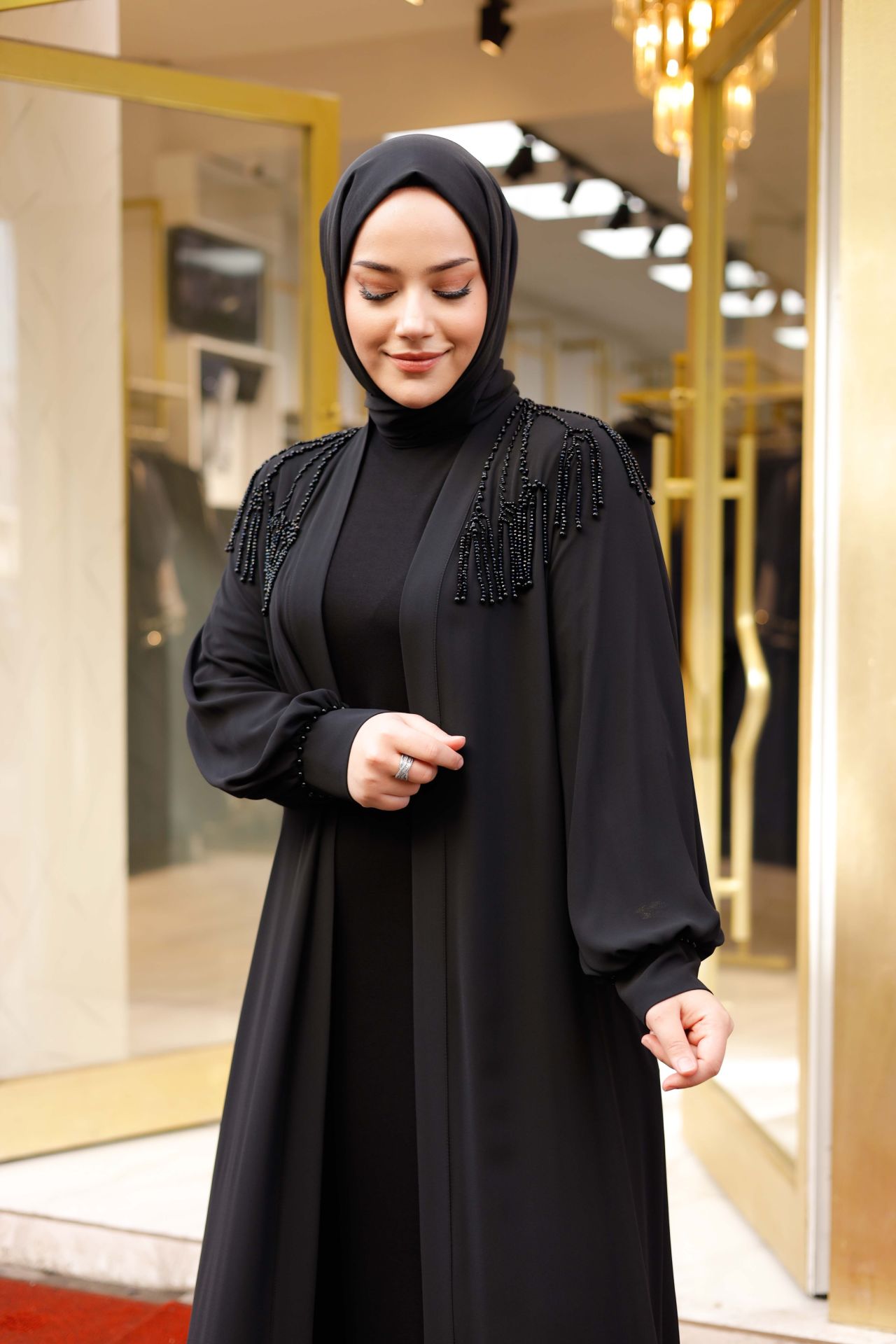 Taş İşlemeli Abaya - Zarafetin ve Işıltının Mükemmel Uyumu