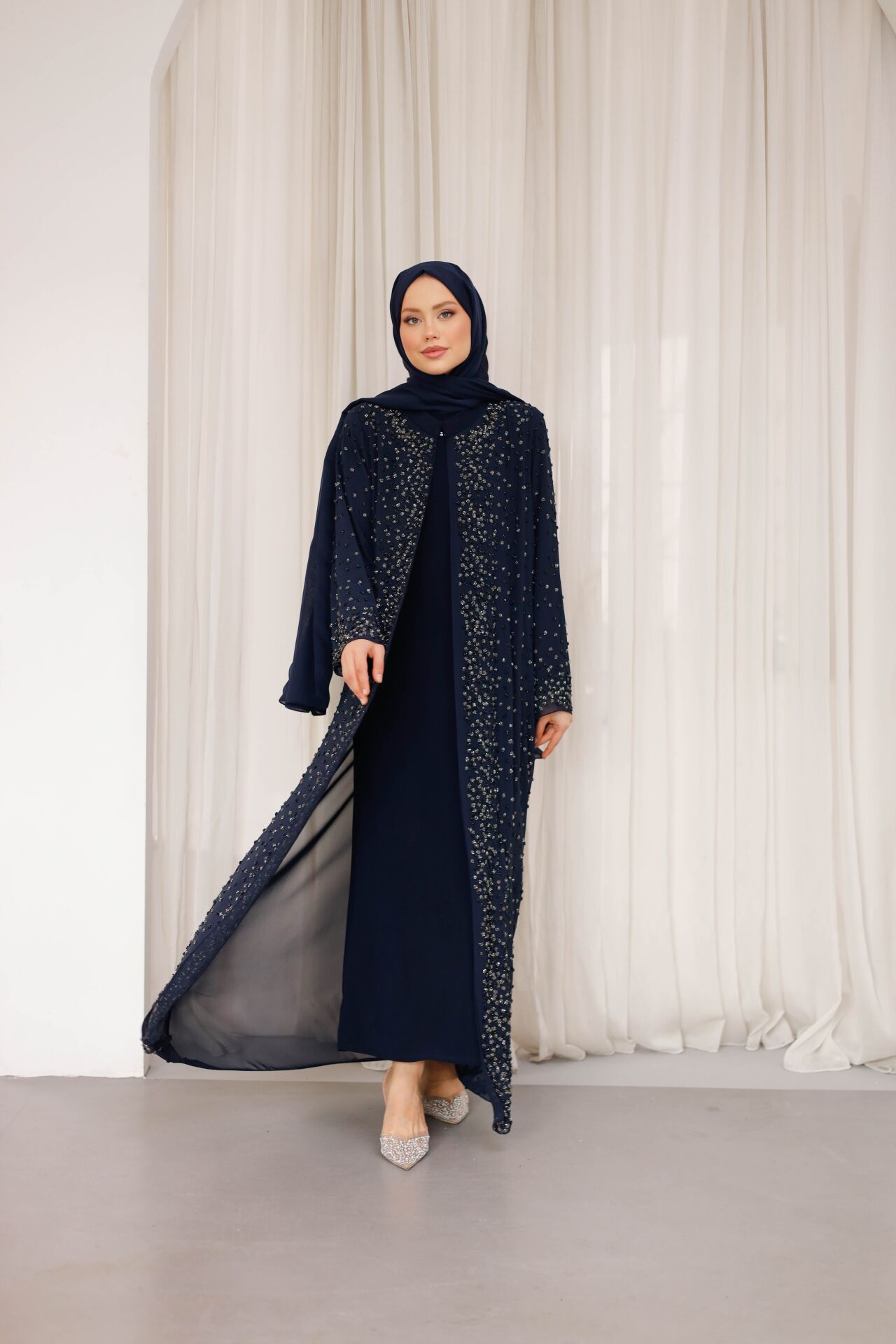 Hafif yapıya sahip şifon kumaşı, gün boyu konfor sağlarken dökümlü formu vücut hatlarını zarif bir şekilde sarar. İç elbisesiyle birlikte sunulan Tuğba Şifon Abaya, hem özel günlerde hem de şık davetlerde kusursuz bir stil oluşturmak isteyenler için ideal bir tercihtir.