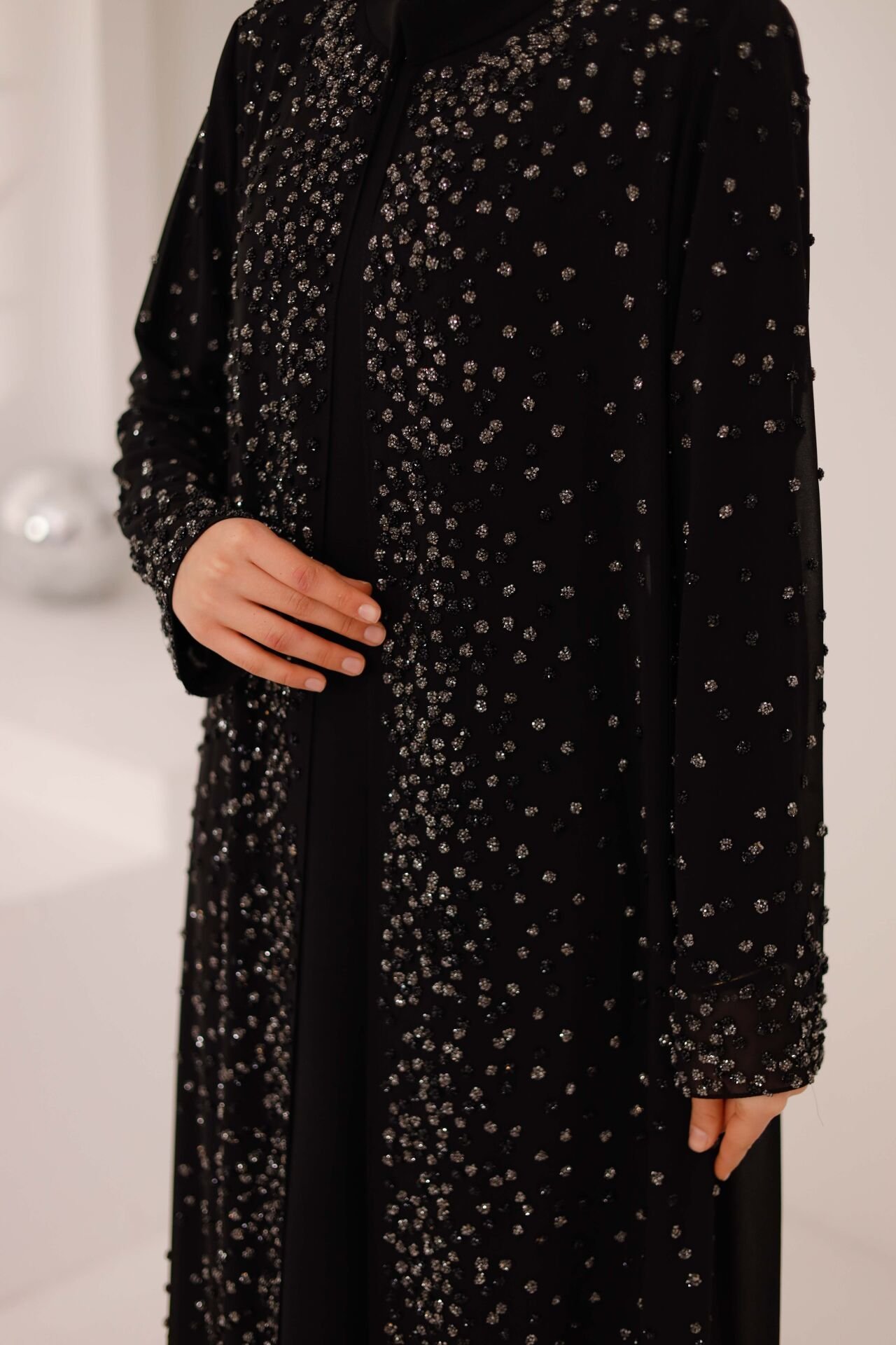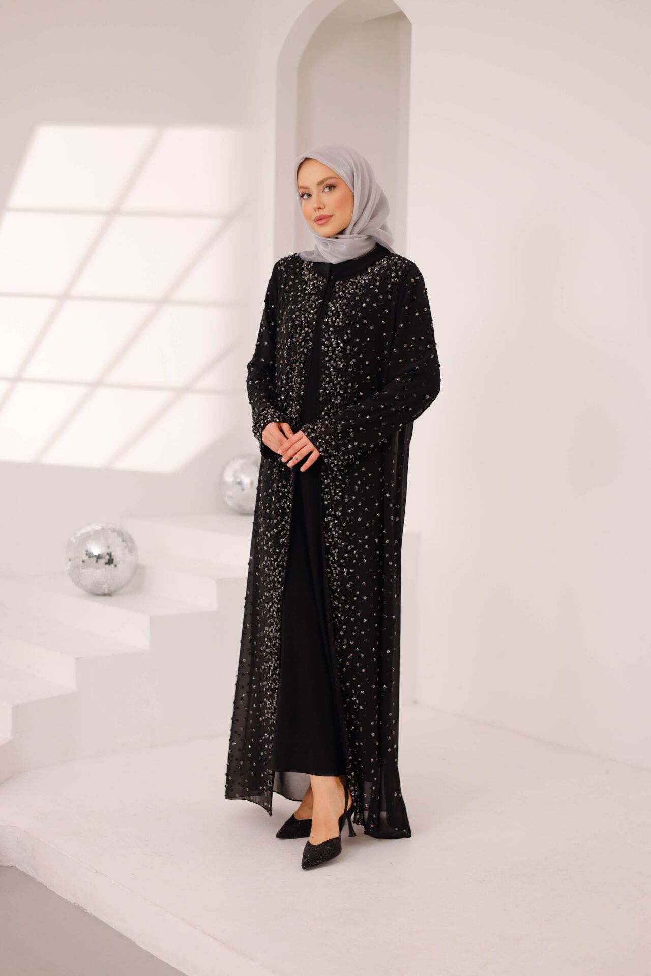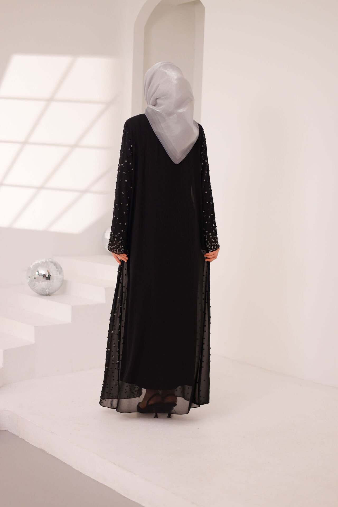 Zarif silueti ve akışkan şifon dokusuyla tasarlanan Tuğba Şifon Abaya, modern tesettür şıklığını sofistike detaylarla buluşturur. İnce taş işlemeleriyle hareket kazanan tasarım, sade kesimi sayesinde dengeli ve asil bir görünüm sunar.
