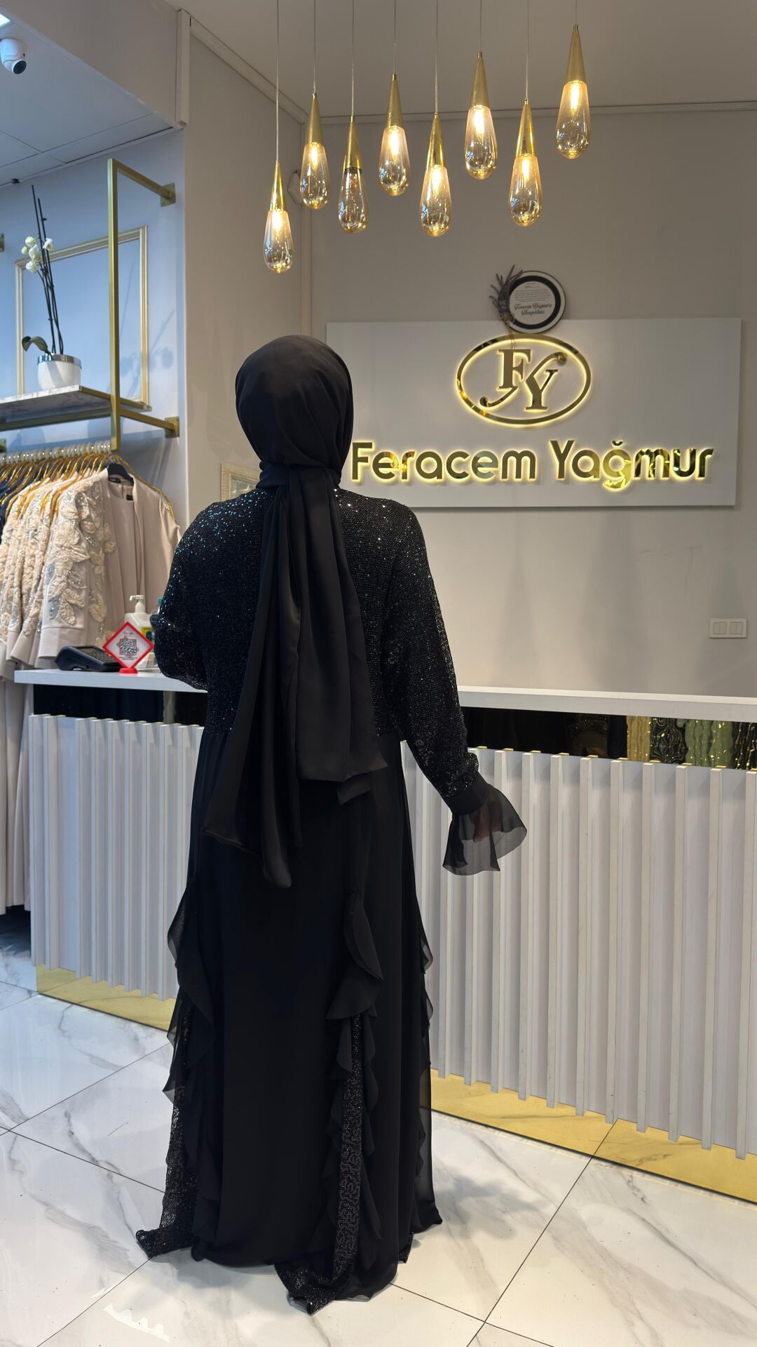 Yakamoz Pul Payetli Şifon Abaya – Feracem Yağmur Koleksiyonu