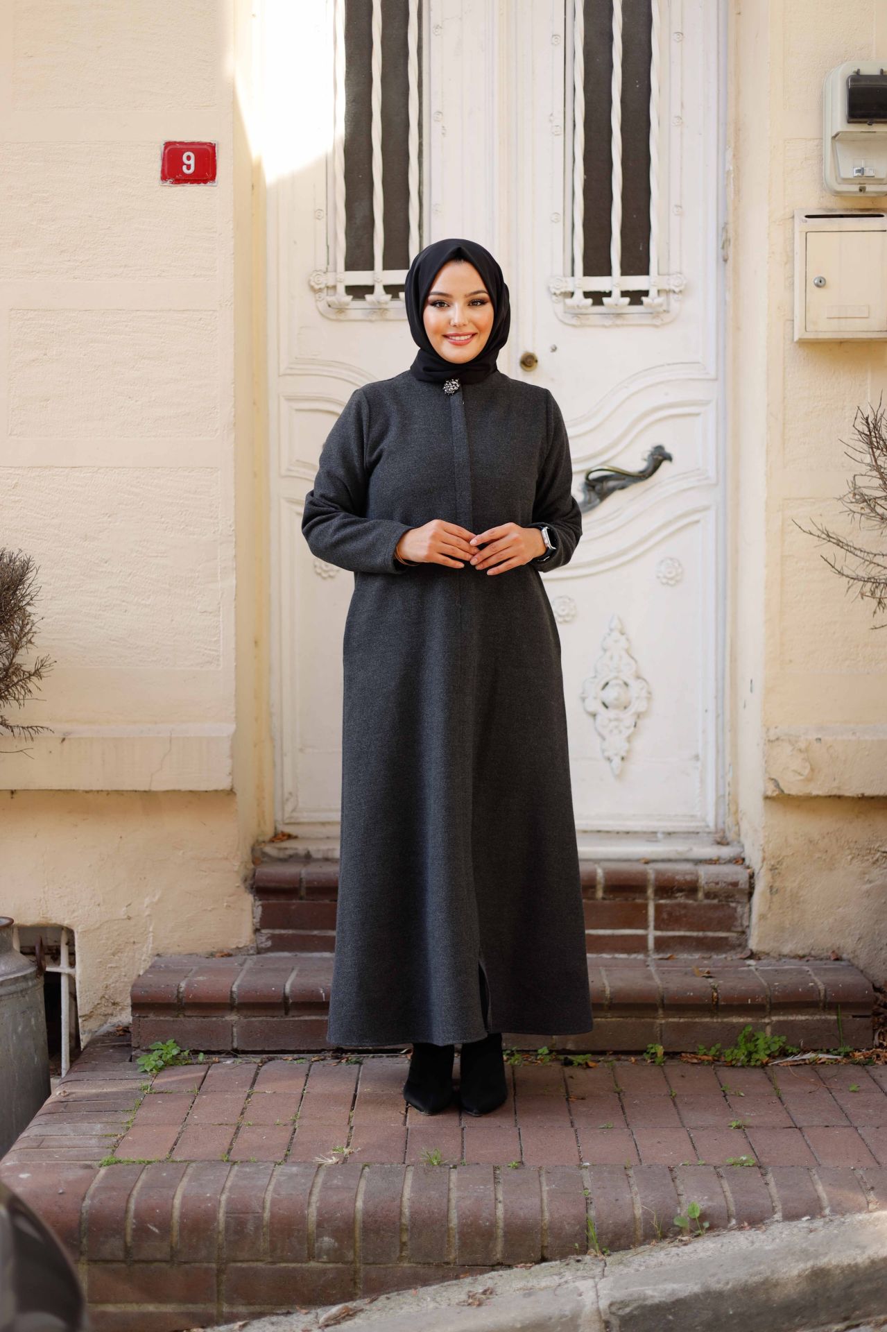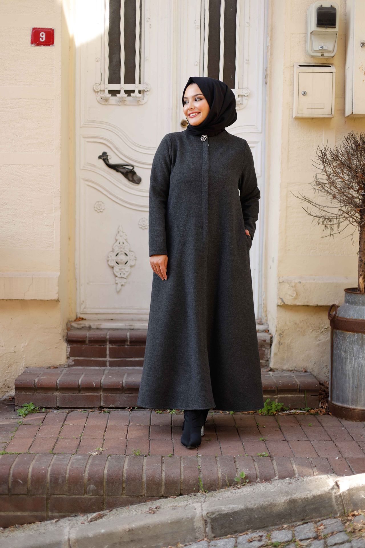Yeşim Kaşe Kaban (Taş Düğme Detaylı)