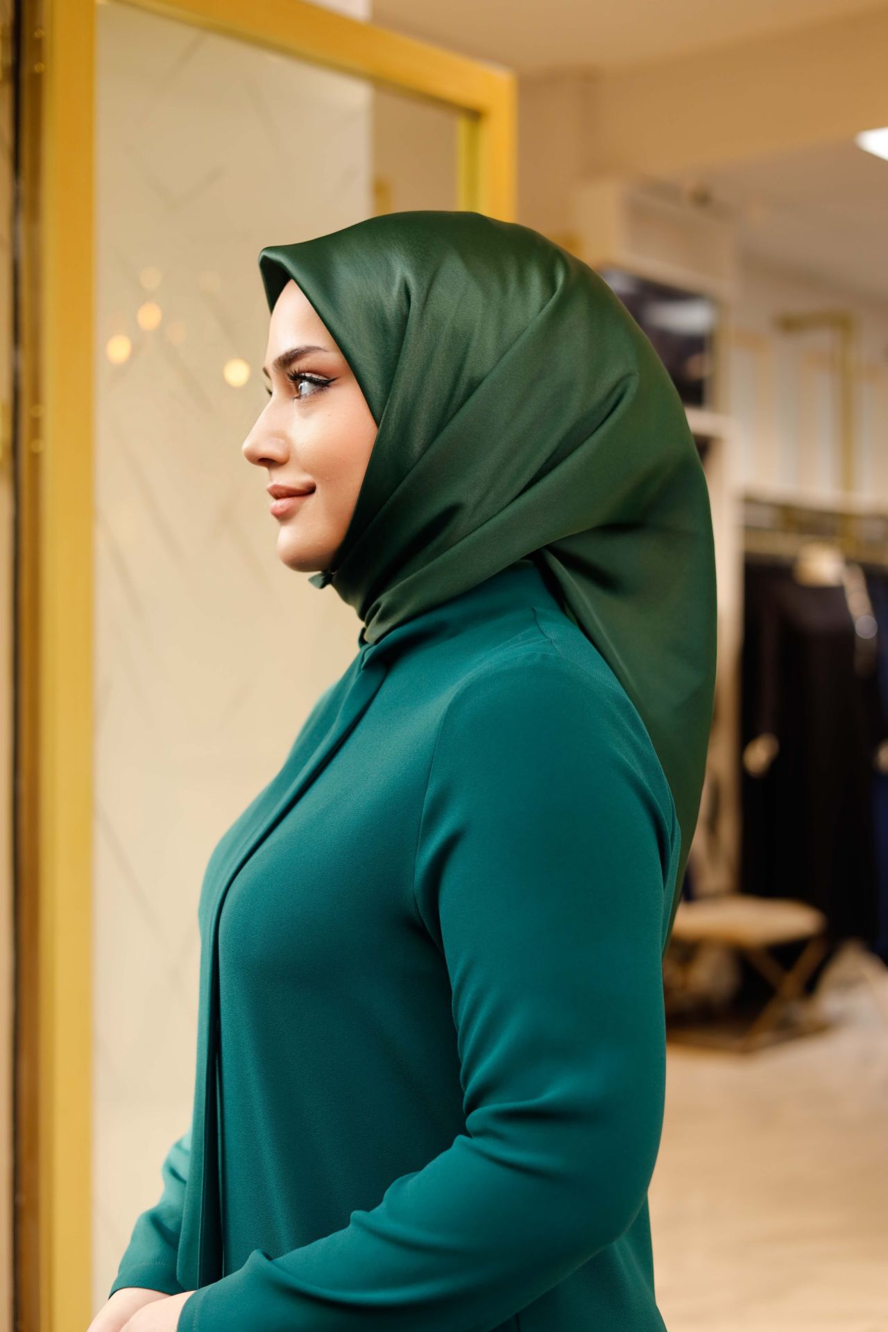 Abraham kumaşı, şıklığı ve sağlamlığıyla tanınan bir dokudur. Bu eşarp, hem hafifliği hem de eşsiz tasarımıyla gardırobunuzda her an ulaşabileceğiniz özel bir parça olacak. Eşarbın zarif dokusu, ışığın altında yumuşak bir parlama yaratırken, zümrüt yeşilinin sofistike tonu tüm bakışları üzerinizde toplayacak.